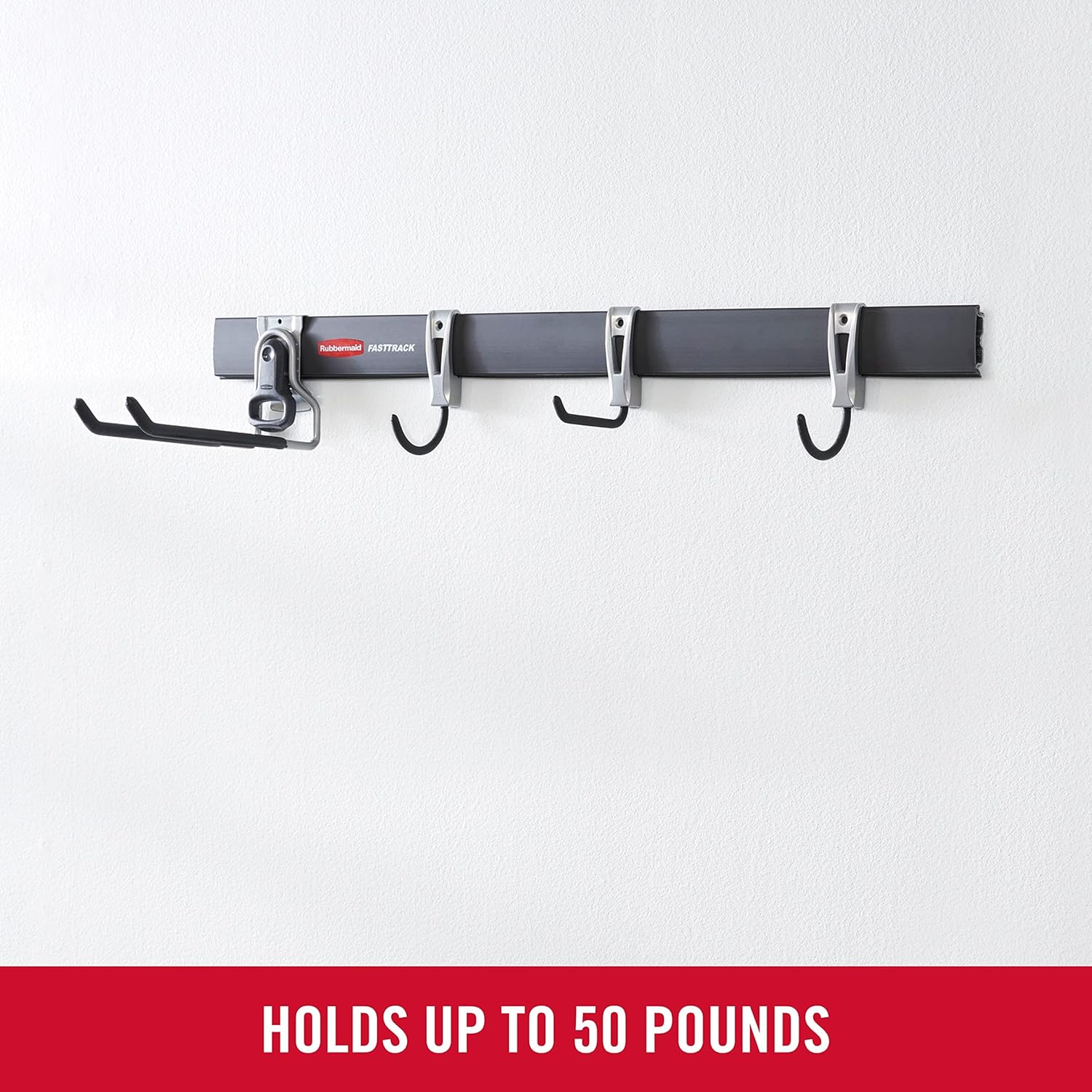 Rubbermaid FastTrack Garage Storage Utility Hooks 5 Piece Black All in One Rail Hook Kit and Tool Organizer Heavy Duty for Home/Garage/Shed/Garden
