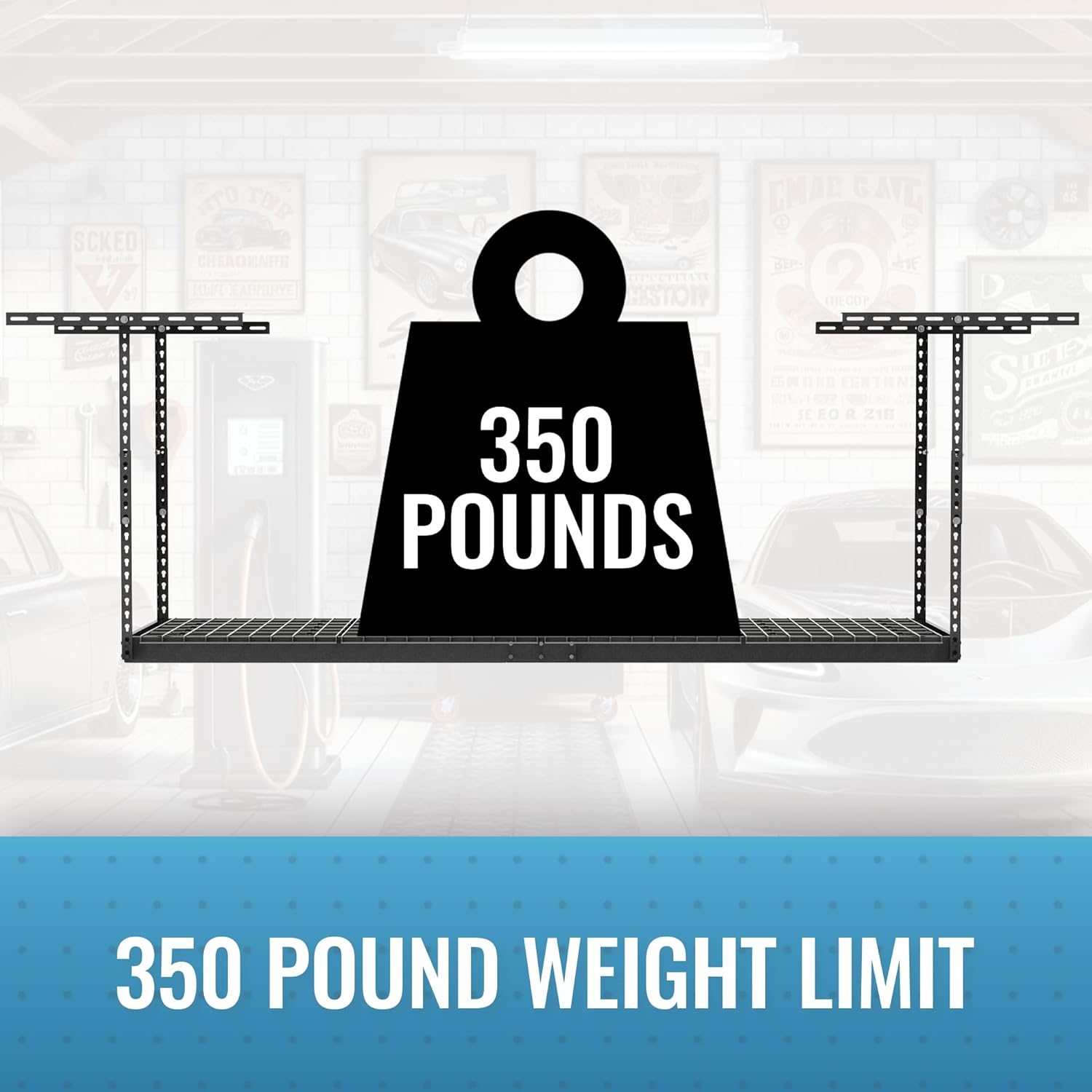 MonsterRax Overhead Garage Storage Rack 2x8, Ceiling Mounted Shelving, Adjustable Hanging Organizer, Heavy Duty Steel, 350 Pound Capacity, Color: Hammertone, Adjusts 18-33" from Ceiling
