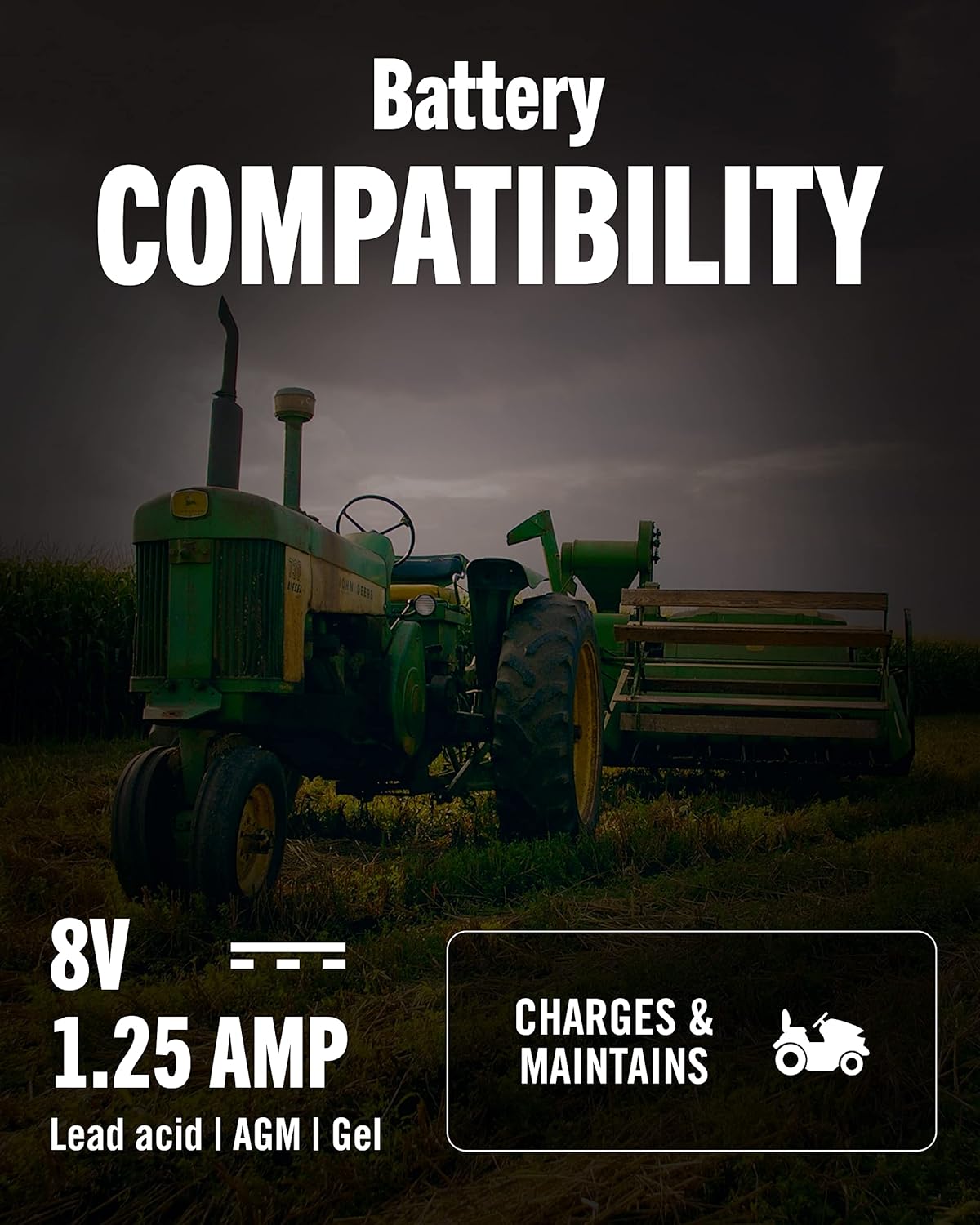 - Extend Battery Life: Compatible with all 8V lead-acid, flooded, AGM, and gel cell batteries. Complete 4-step charging program (Initialization, Bulk Charge, Float Mode) allows for optimization of battery power. Smarter than a trickle charger