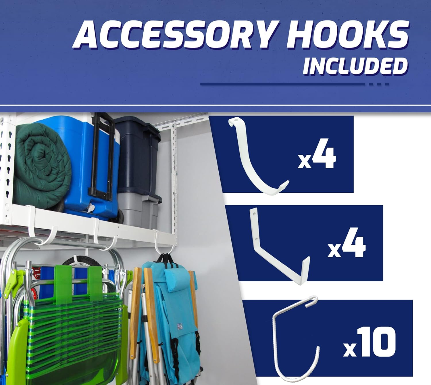 SafeRacks Overhead Garage Storage Rack, Heavy Duty Racks for Garage w/ 600 lb Capacity, Easy Garage Storage Adjustable Storage Rack Ceiling Mount Storage for Garage 4x8 White, 24"-45" (2 Pack)