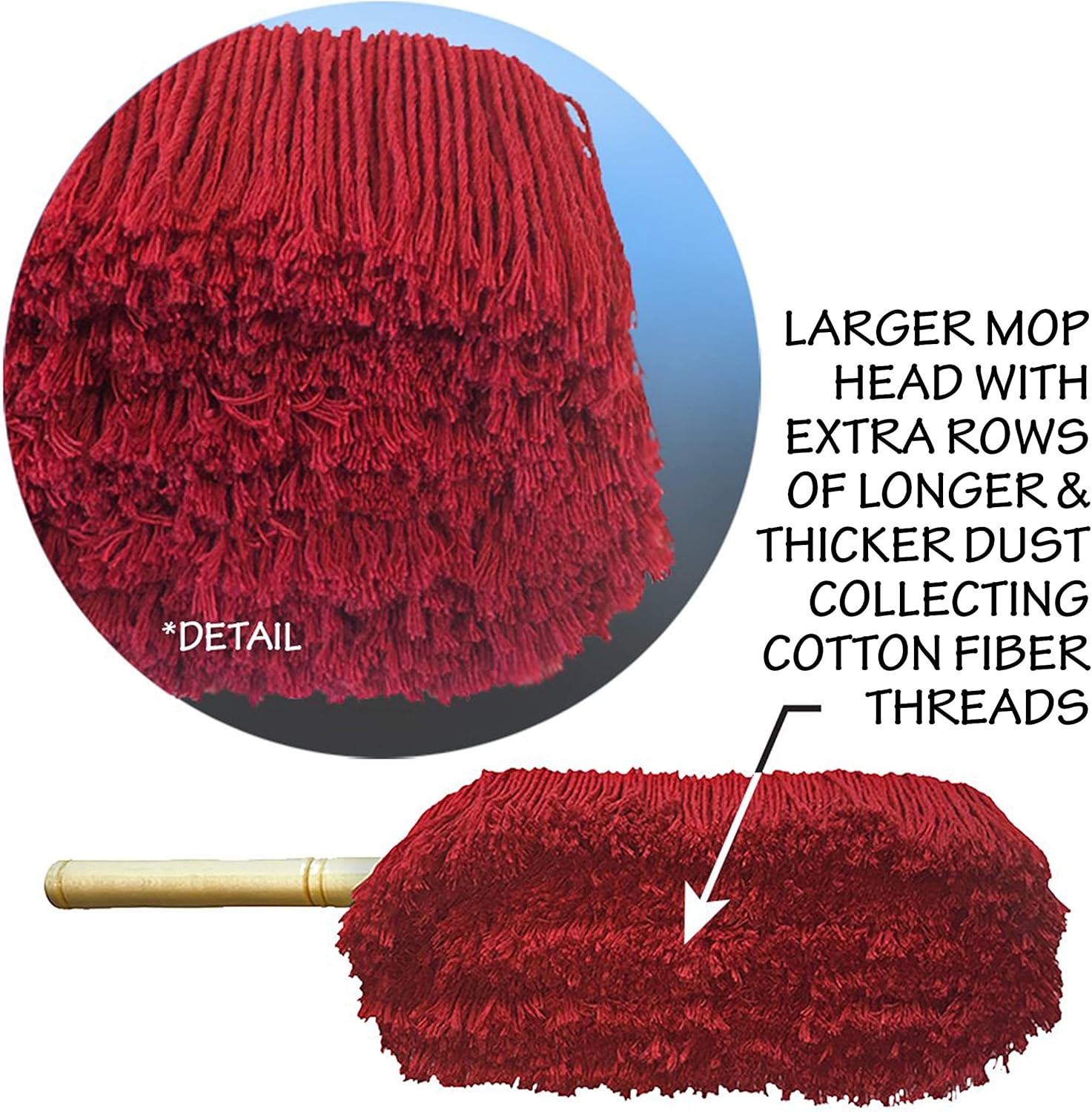 - EXTRA LARGE DUSTER HEAD - Wax Infused Cotton Threads Lifts Dust from Cars Surface