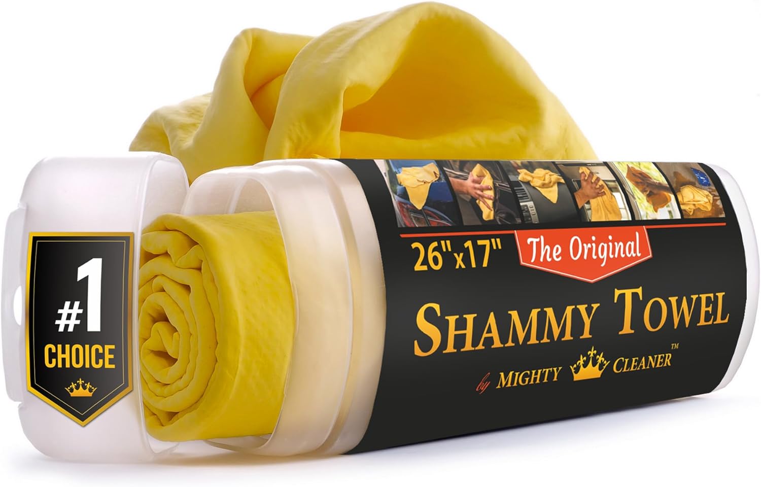 - EXCELLENT ABSORBENCY - The Mighty Cleaner chamois towel for car care quickly absorbs and holds large amounts of water, leaving your car’s finish spotless and streak-free. Our shammy cloth for car drying works like a sponge and a towel in one for cleaning occasional spills.