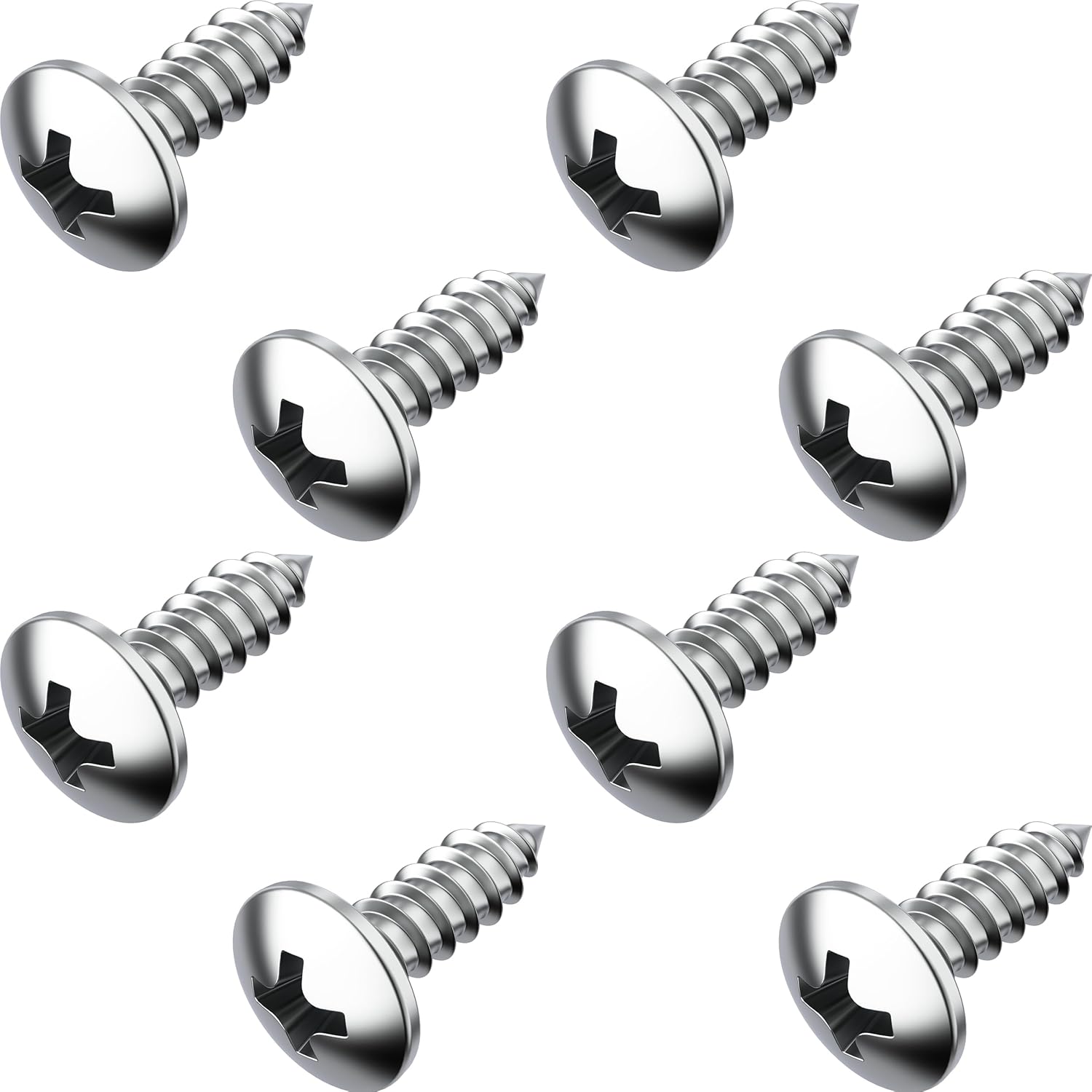 - 8 Screws for Total Plate Security: This set includes 8 heavy-duty stainless license plate screws, providing everything you need to securely mount both front and rear license plates. Compatible with most frames and holders of most vehicles, our rust proof license plate screws are the all-in- one solution for a rattle-free, reliable fit.