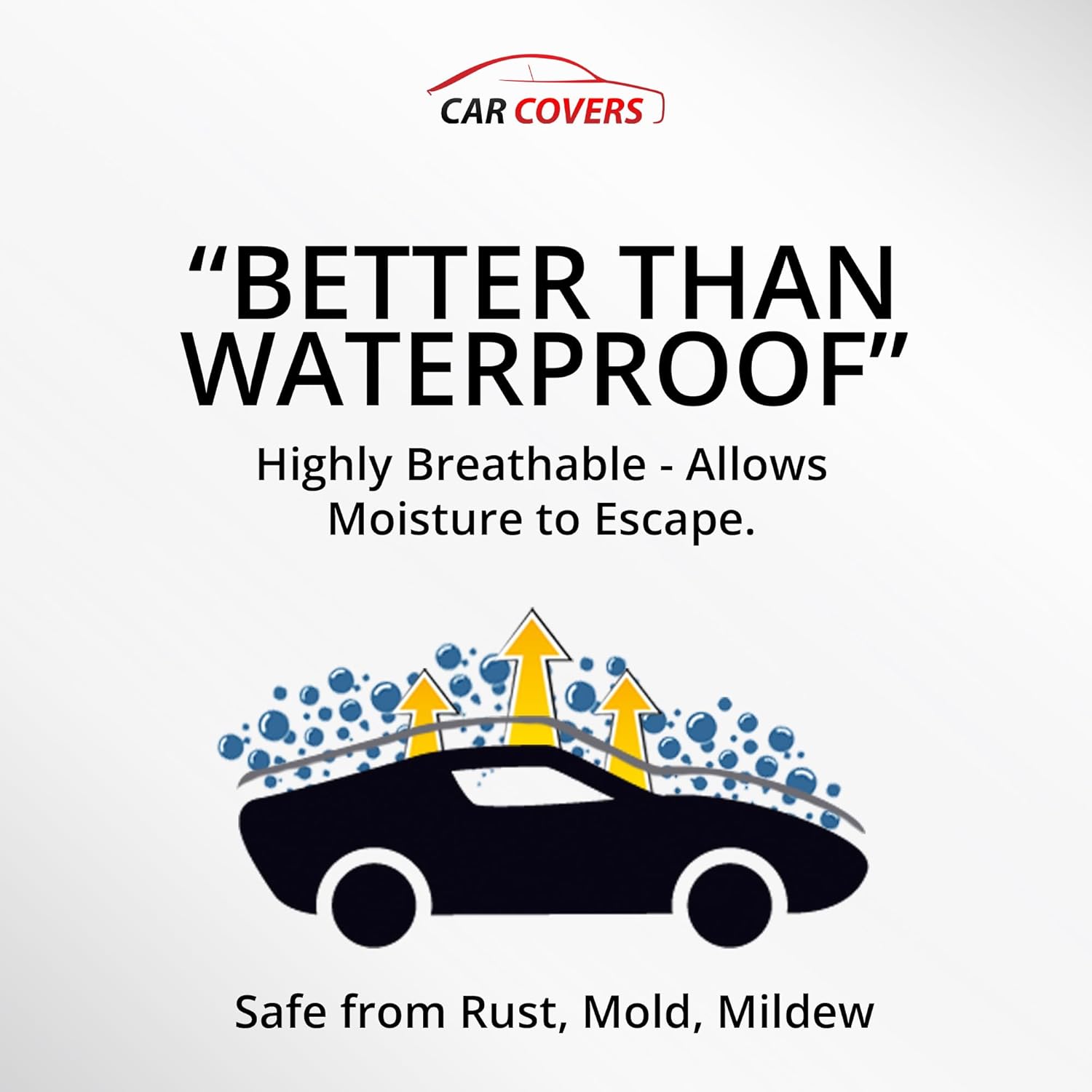 - BETTER THAN WATERPROOF: Dirt, Dust, Wind, UV rays, and other external factors pose greater risks to your car than water. 100% waterproof car covers lack breathability, trapping moisture that leads to rust and water damage. Our car covers are highly breathable while also offering maximum protection against moisture.