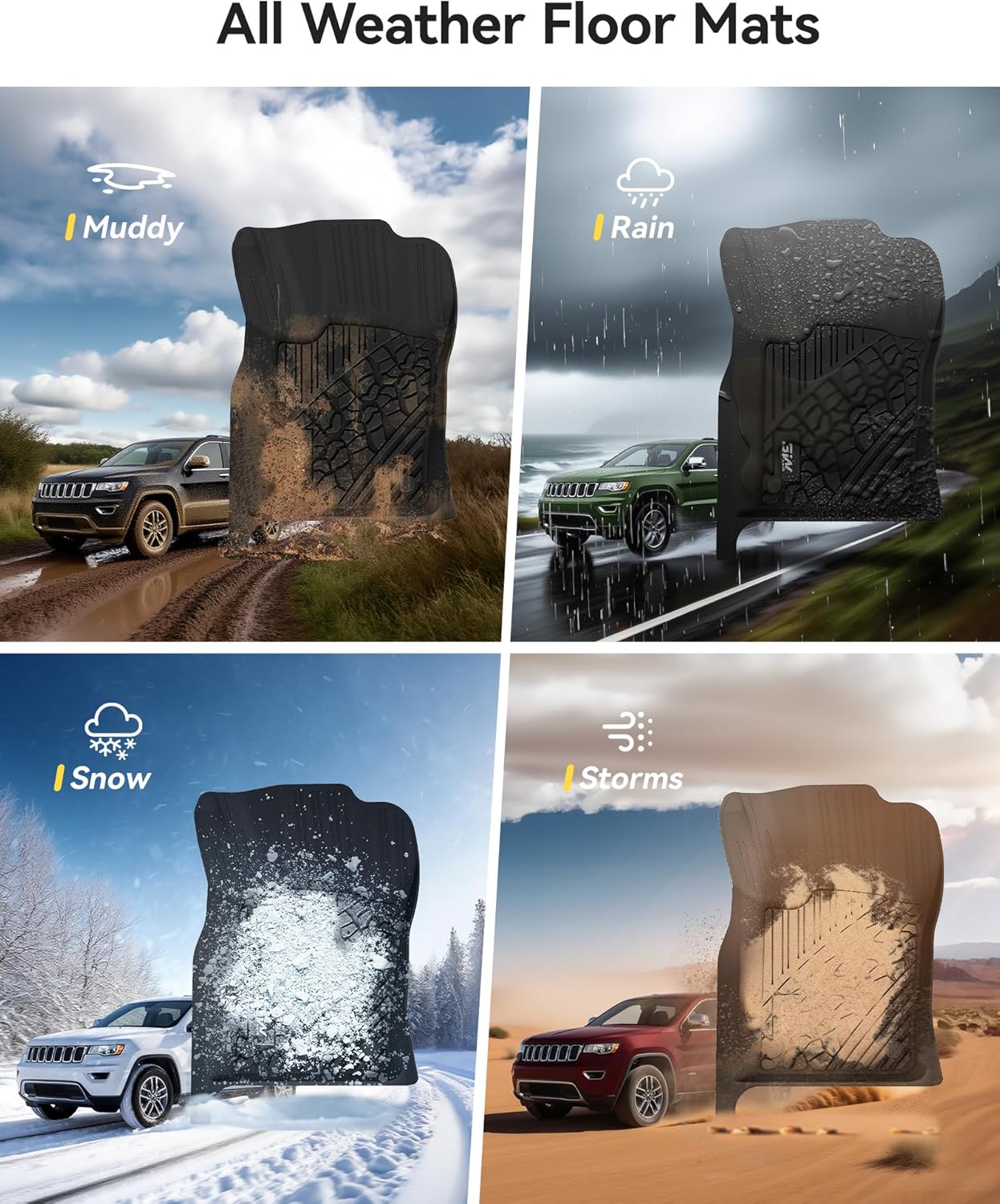- ALL-WEATHER GRAND CHEROKEE CAR MATS: These durable TPE rubber car mats can prevent stain liquid snow mud and debris from contaminating your carpet. It is a must-have for your car protection all year round.