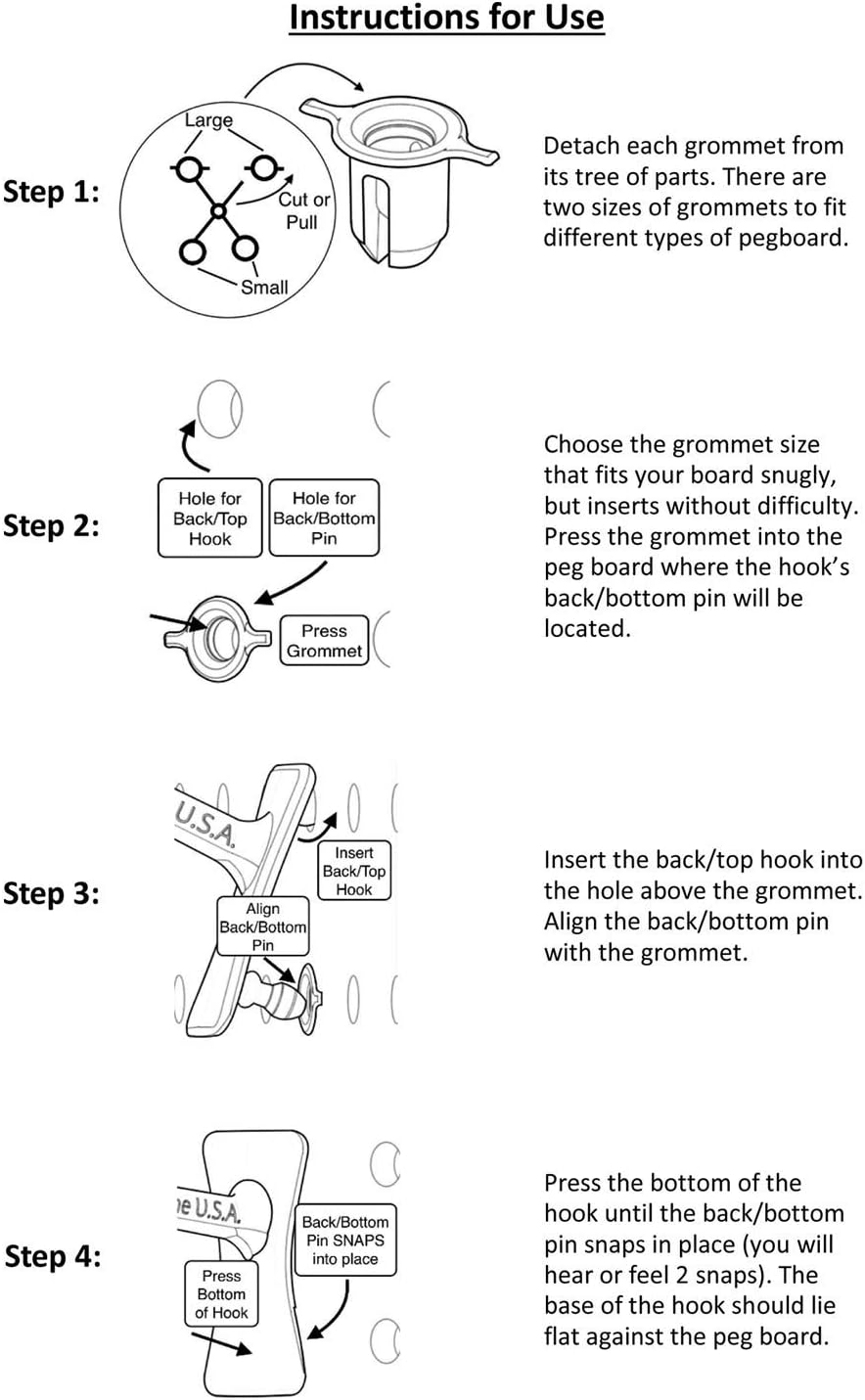 - Patented Snap-Tite Technology locks Hooks securely onto most “wood fiber” pegboards.