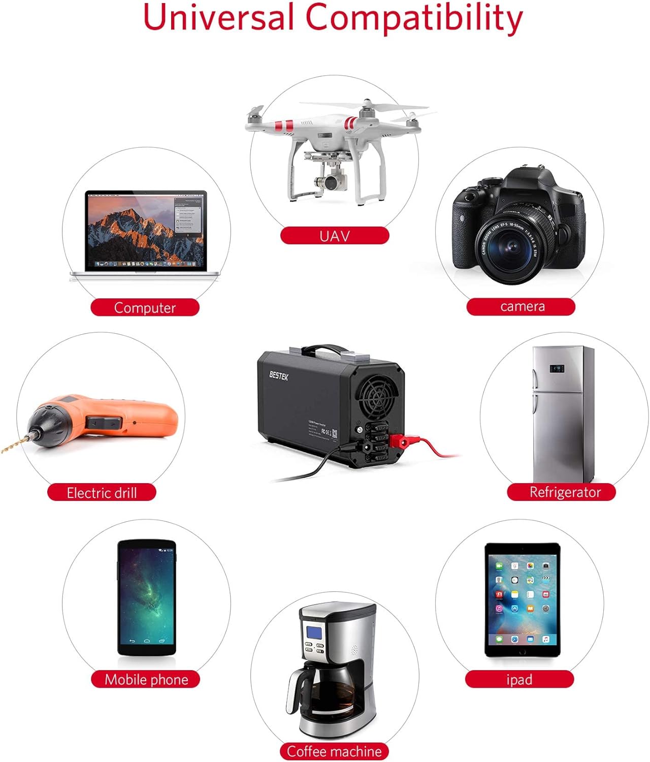 - BESTEK’s power inverter: America's #1 power inverter brand. Car inverter supply 1200W continuous DC to AC power, featuring 2 AC outlets and 2 USB quick charging ports, digital LCD display. Ultra-powerful, can be used for appliances when camping, traveling, or other outdoor activities, also ideal for emergency use when there is no electricity in remote or tough areas.