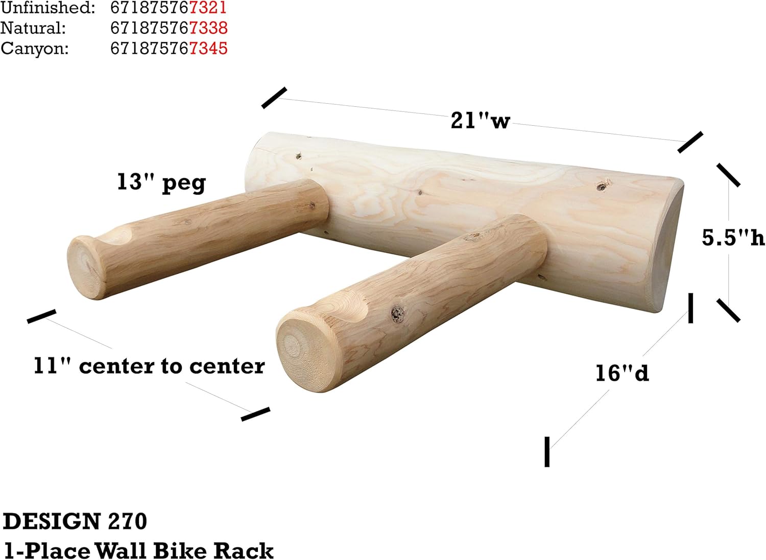 1-Place Wall-Mounted Bike Log Rack, Road Bike Wall Mount Hook, Bicycle Hangers for Garage Wall Racks, Bicycle Hooks for Hanging, Indoor Storage Garage Hooks for Bikes - Unfinished