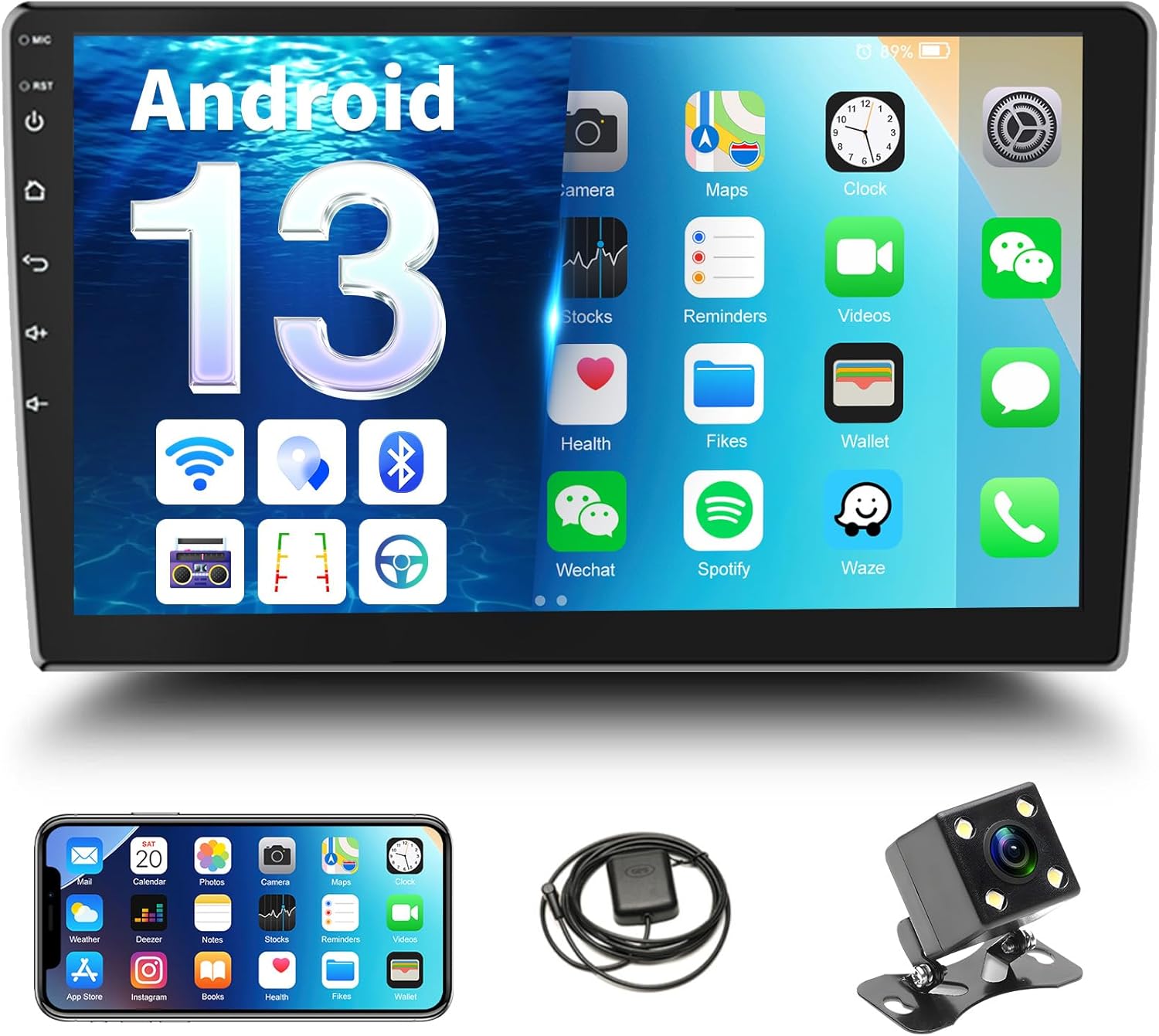 - 【Android Radio with Mirror Link】Project the mobile phone to the car display. This car audio receiver supports the mirror link function of most mobile phones. Support Android 13 and below, iPhone 16 series and below.