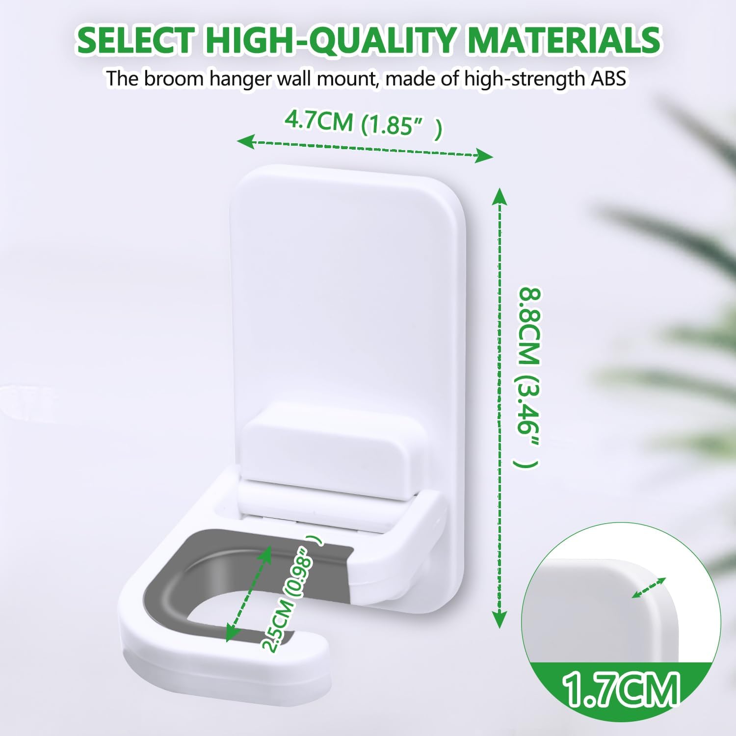 4pack Broom Holder Wall Mount Mop Holder Broom and Mop Gripper Self Adhesive No Drilling Anti-Slip Mop Handle Hanger Household Cleaning Organizer, Holds up to 6 lb