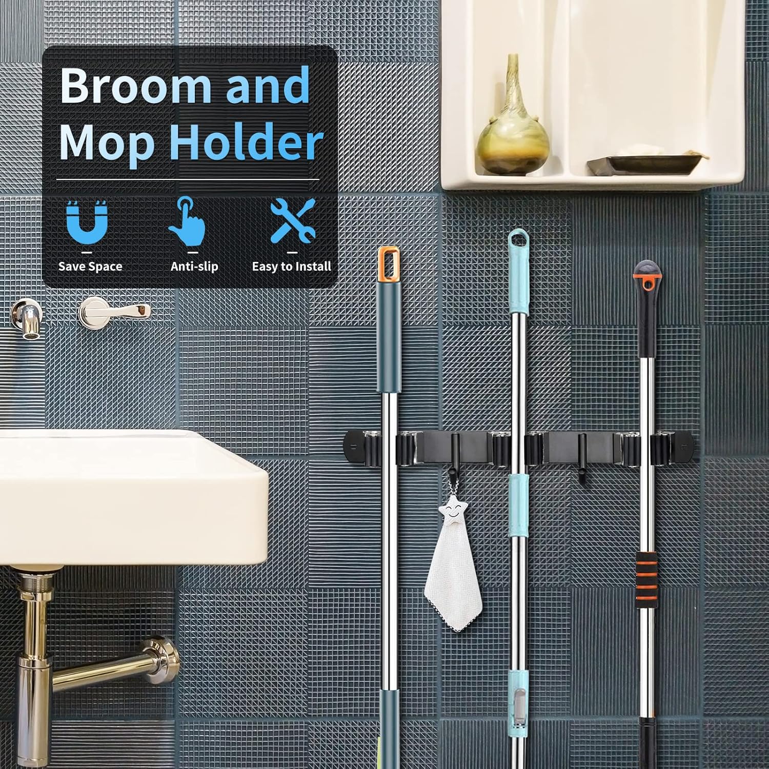 - Easy to install: The mop holder wall mounted comes with simple and clear instructions, making it easy to install with just a few basic tools. Whether you choose to use screws or adhesive, broom and mop holder the installation process is straightforward and can be completed in just a few minutes.