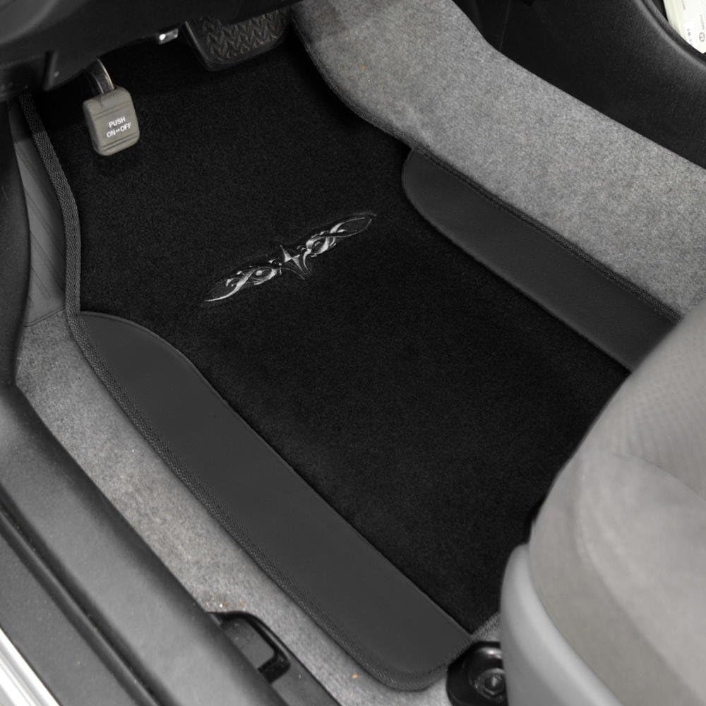 BDK carXS Fresh Two-Tone Carpet Floor Mats, Tribal Tattoo Design with Vinyl Trim for Car Sedan Truck SUV, Front & Rear Set of 4, Black