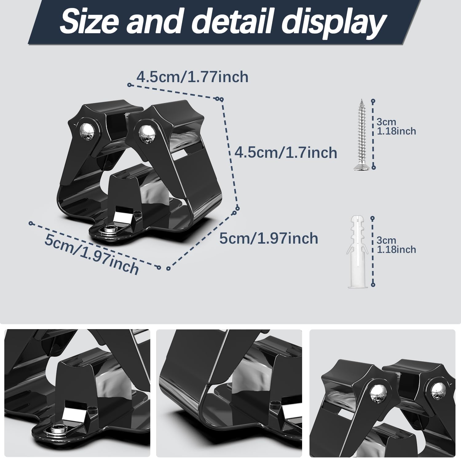 - EASY TO USE: Because mop broom holder wall mounted is made of 0.7mm thick metal material instead of 0.5mm as most of the ones on the market, you don’t have to worry about deformation even if you use it indoors or outdoors for a long time.You can slide the broom in and out with one hand. Unlike plastic mop holders with spring-loaded rollers, this broom organizer wall mount has rubber rollers to hold the handles, allowing the handle to slide in from the front and be held firmly in place.
