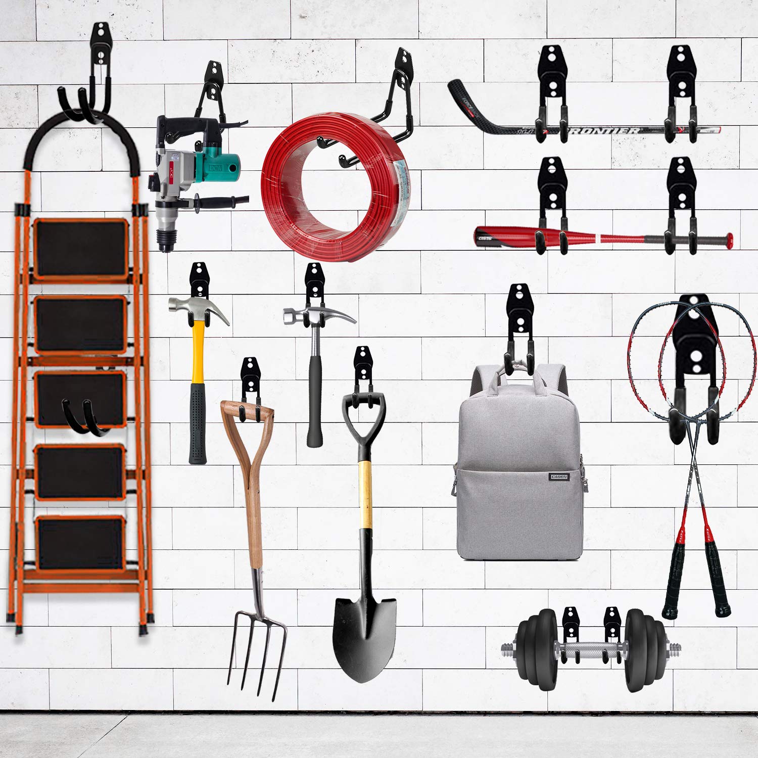 - Premium Quality Garage Hooks Heavy Duty: The garage storage hooks made of heavy duty steel metal material which provides superior load-bearing capacity, and using anti slip PVC impregnation coating to prevent scratches. The garage tool hanger also equipped with premium quality screws, make the garage wall hooks hang more firmly on the wall and not easily fall off