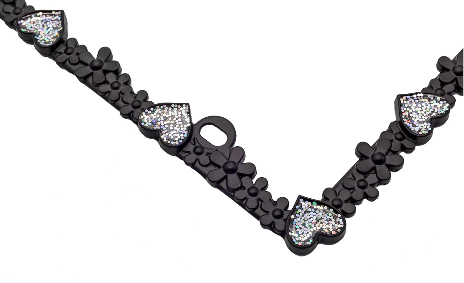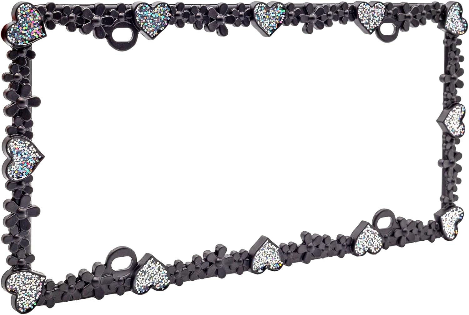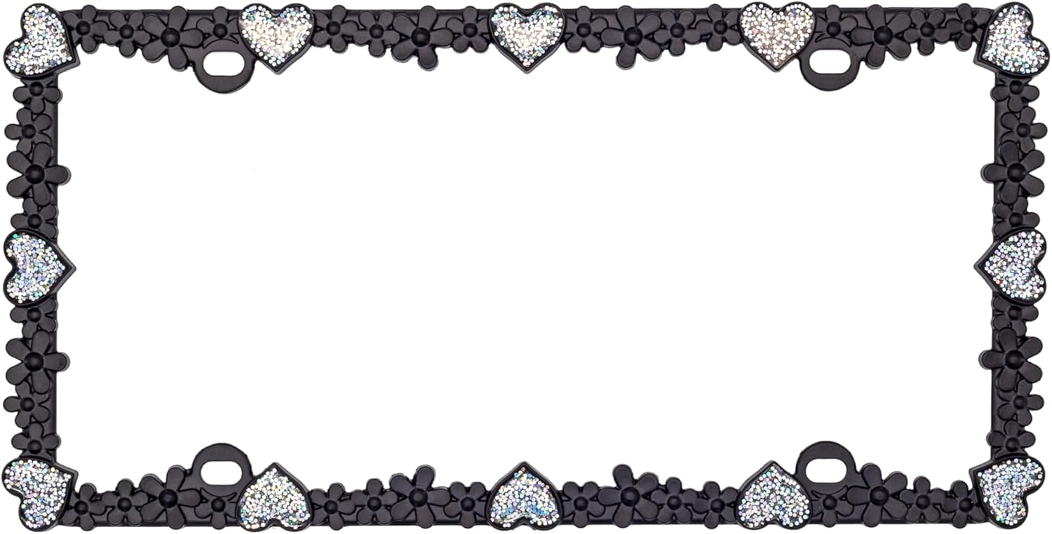 Creathome 3D Shining Daisy Heart License Plate Frame from Pure Zinc Alloy Metal Perfect Plate Holder, Matt Black with Silver Glitter Luminously Heart
