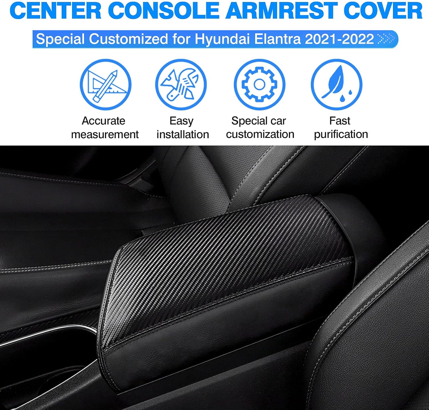 Autorder Center Console Cover for Hyundai Elantra 2021-2025 2026 Accessories Carbon Fiber Armrest Cover Anti-Scratch Leather Armrest Protector (Automatic Brake Only, Not for Handbrake)