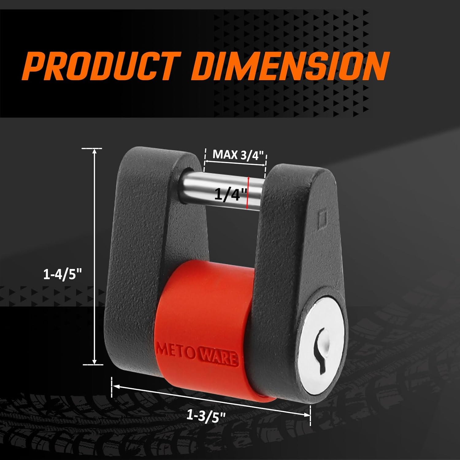 - 【CONVENIENT TO CARRY】- Heavy-duty trailer coupler lock is powerful and mini (1/4” diameter, 3/4” span) -- convenient for you to carry, available to put in your pocket, bag, or vehicle anywhere. The coupler lock comes with 2x keys, so you can keep one for standby.