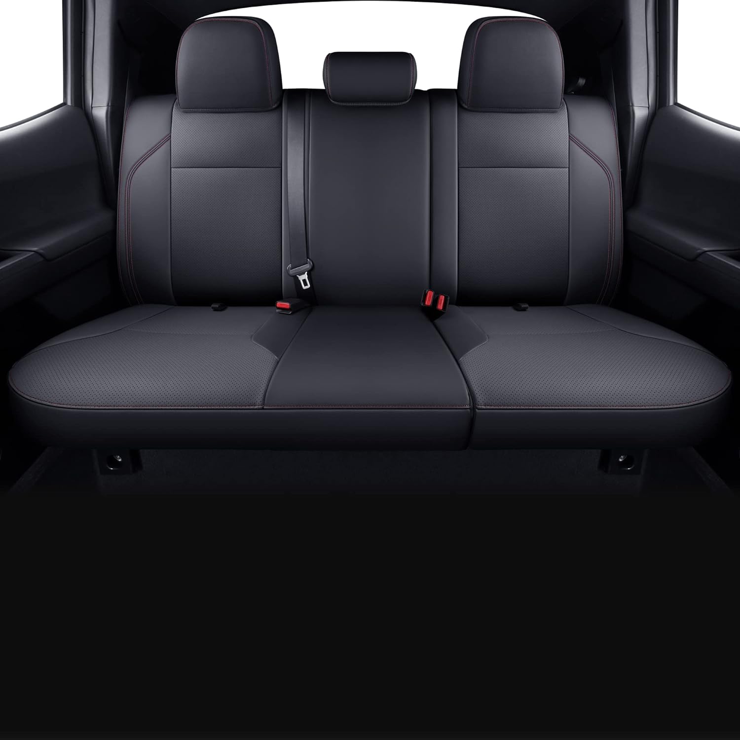 LUCKYMAN CLUB Tacoma Custom Fit Seat Covers for 2016-2023 Tacoma Crew Cab with Faux Leather (Black & Red)