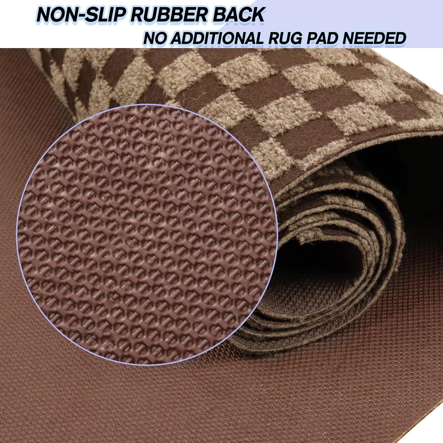 Custom Size Backed Non-Slip Area Rugs Runner, Easy Clean, Waterproof Runner Rugs for Hallway Entryway, Kitchen, Laundry, 3FT x 62FT, Brown Checkered