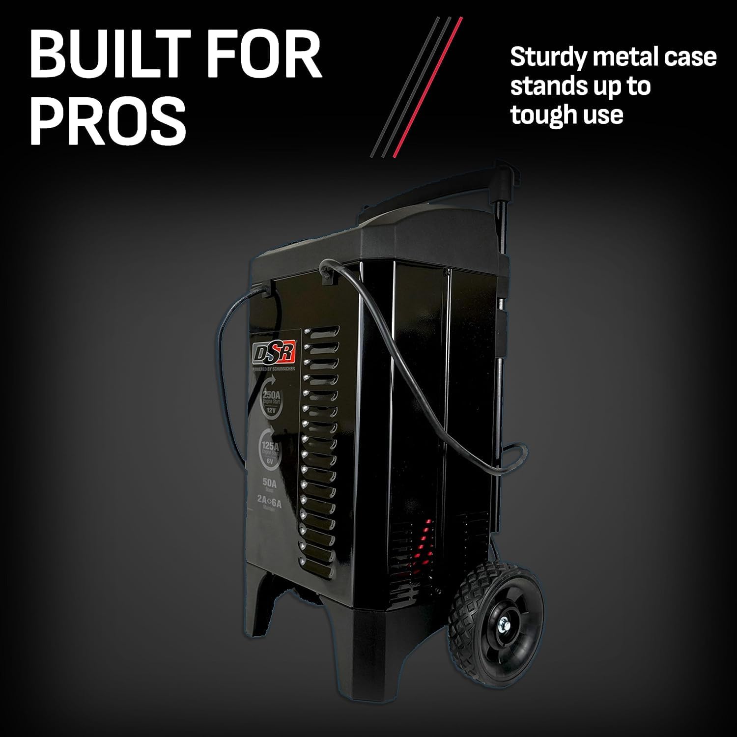 Schumacher Electric DSR Pro Series 6V / 12V Wheeled Battery Charger & Engine Starter - Heavy Duty Car Battery Charger & Maintainer - Fully Automatic - 125/250 Amps - DSR161