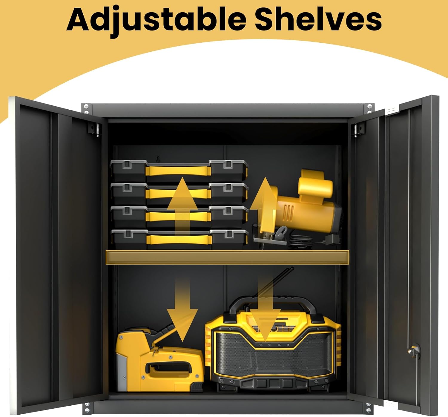 - 【Metal Storage Cabinet】The locking storage cabinets with 1 adjustable shelves can better meet your storage needs at home.You can adjust the shelves according to the height of the product.suitable for your garage, home office, bathroom,pantry or utility room