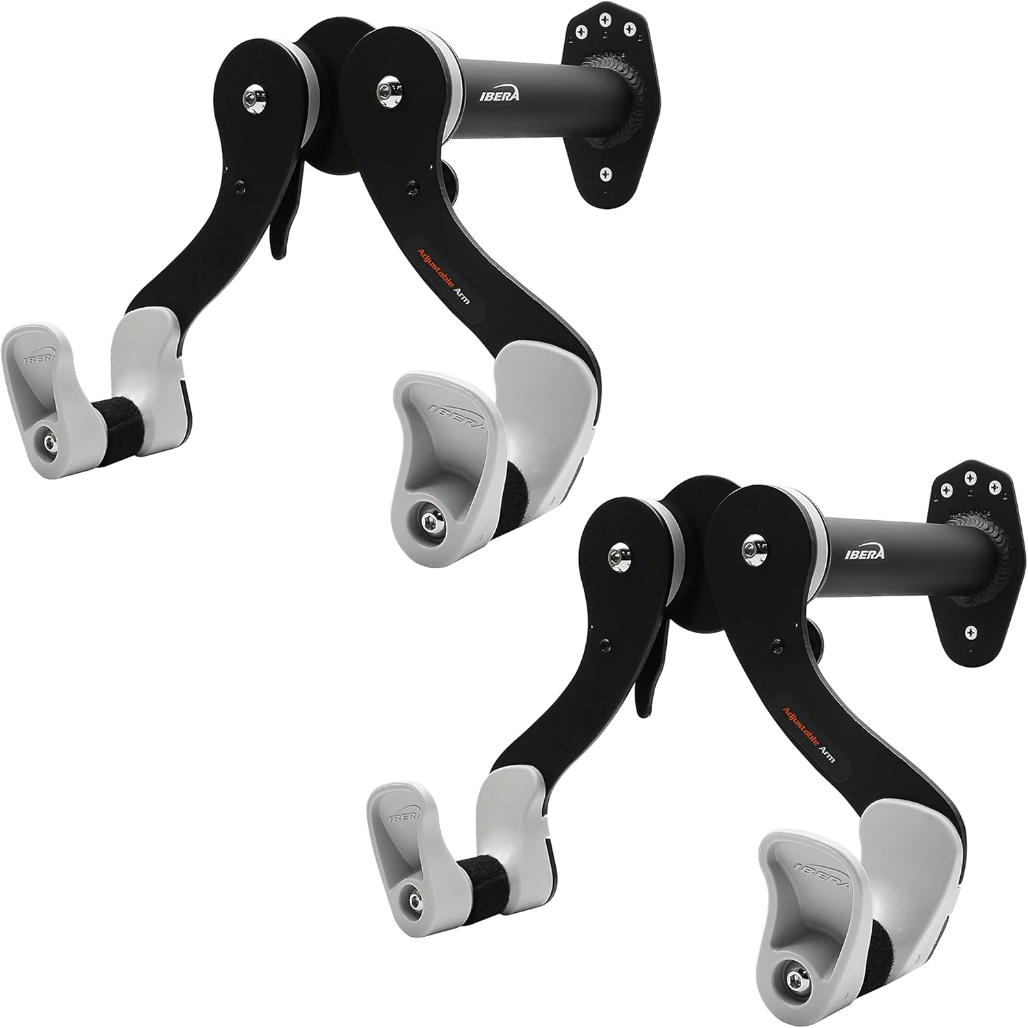 Ibera Bike Wall Mount - Secure Bike Storage up to 18kg with Adjustable Frame Holder & Soft Rubber Cradles - Garage Bike Rack for Road, MTB, Kids, Hybrid Bikes - Easy Installation & Space-Saving Design