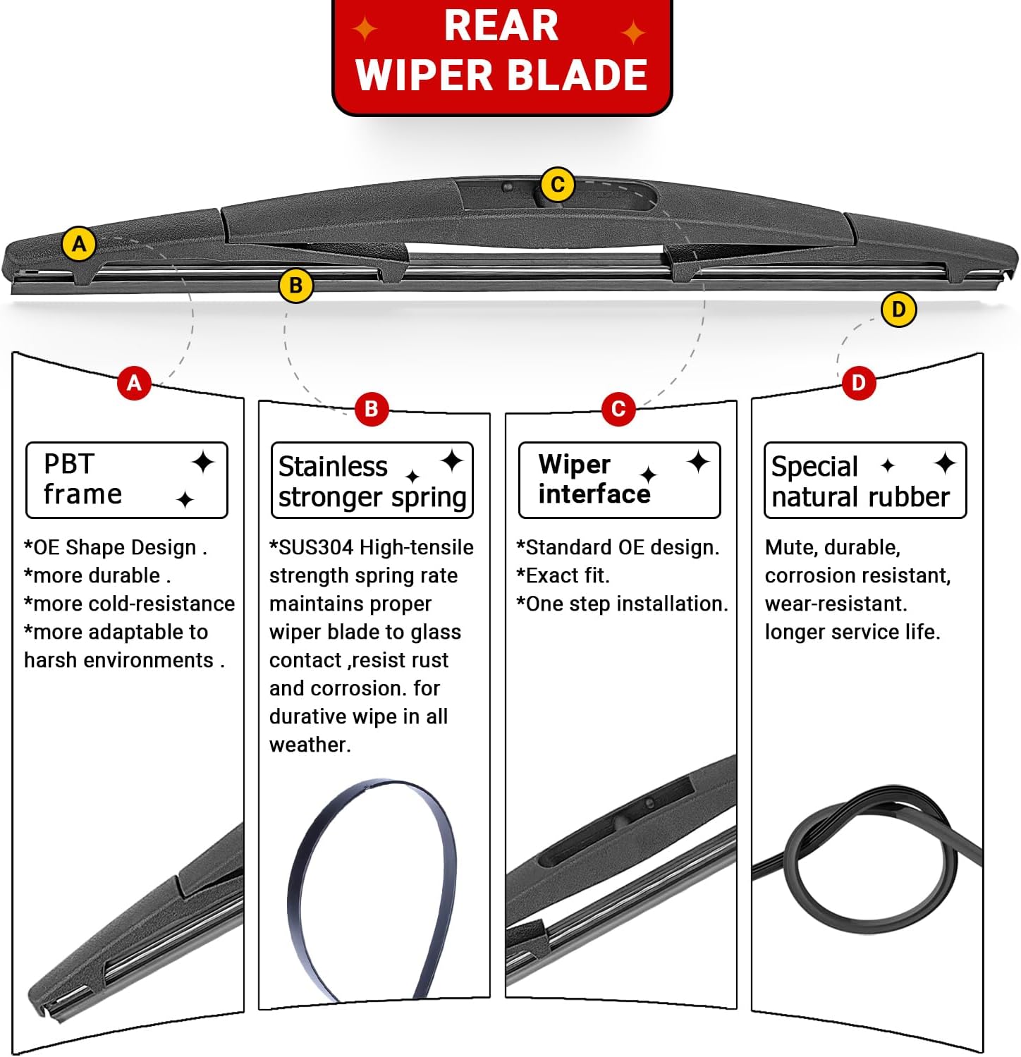 - {WIPER INSTALLATION}: Exact Fit OE Wiper Interface, (Easy and quick to change, quick to remove, easy to clean.)