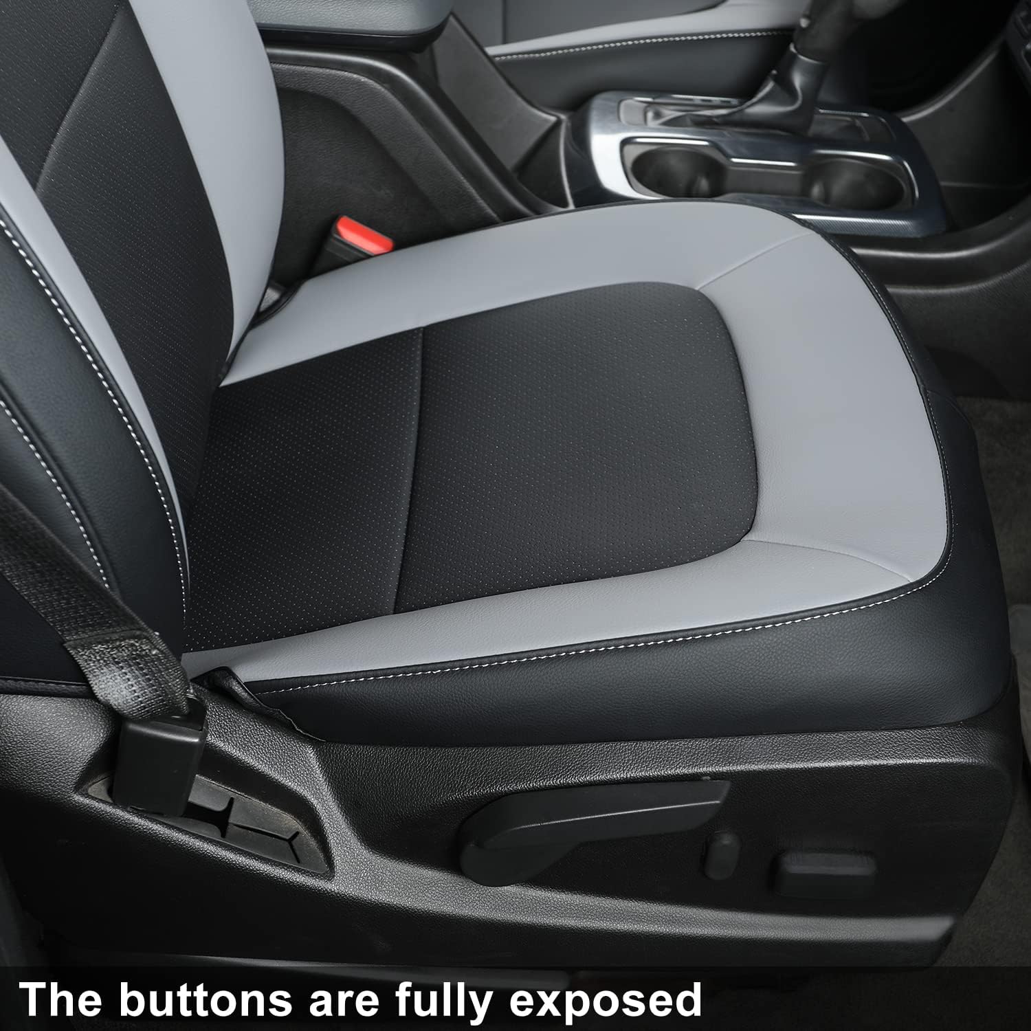 LUCKYMAN CLUB Chevy Colorado Seat Covers, fit for 2015-2022 Colorado Crew Cab Z71 LT ZR2 Work Truck with Faux Leather (Black&Gray)
