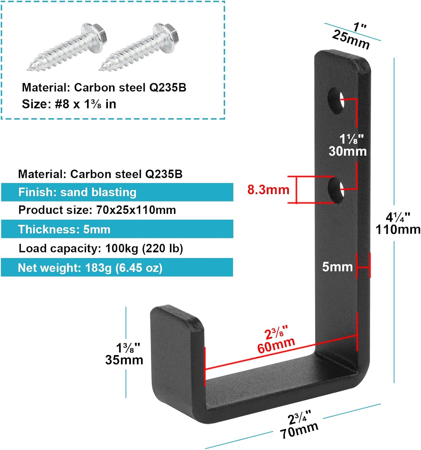 - Package Content: 4 x steel Wall Hooks, 8 x Mounting Screws