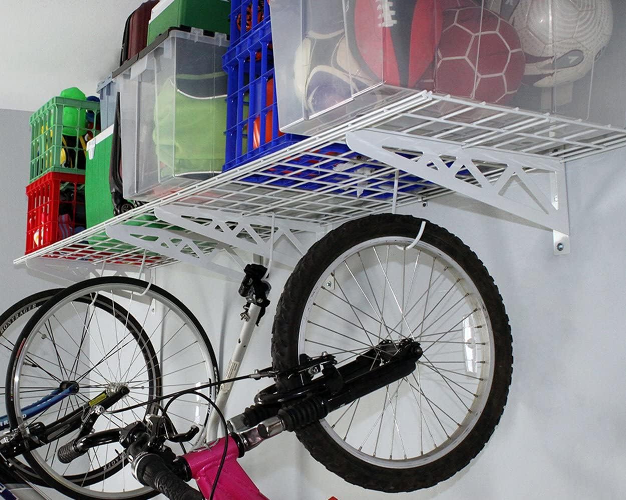 - MULTIFUNCTIONAL UTILITY RACK: Each pack includes (2) wall shelves and (4) versatile deck hooks that allow you to use them in many ways. Use them as storage racks and shelving in your basement, garage, pantry, or laundry room, and confidently hang your bicycle, golf accessories, canned goods, or yard tools and more to gain usable floor space.
