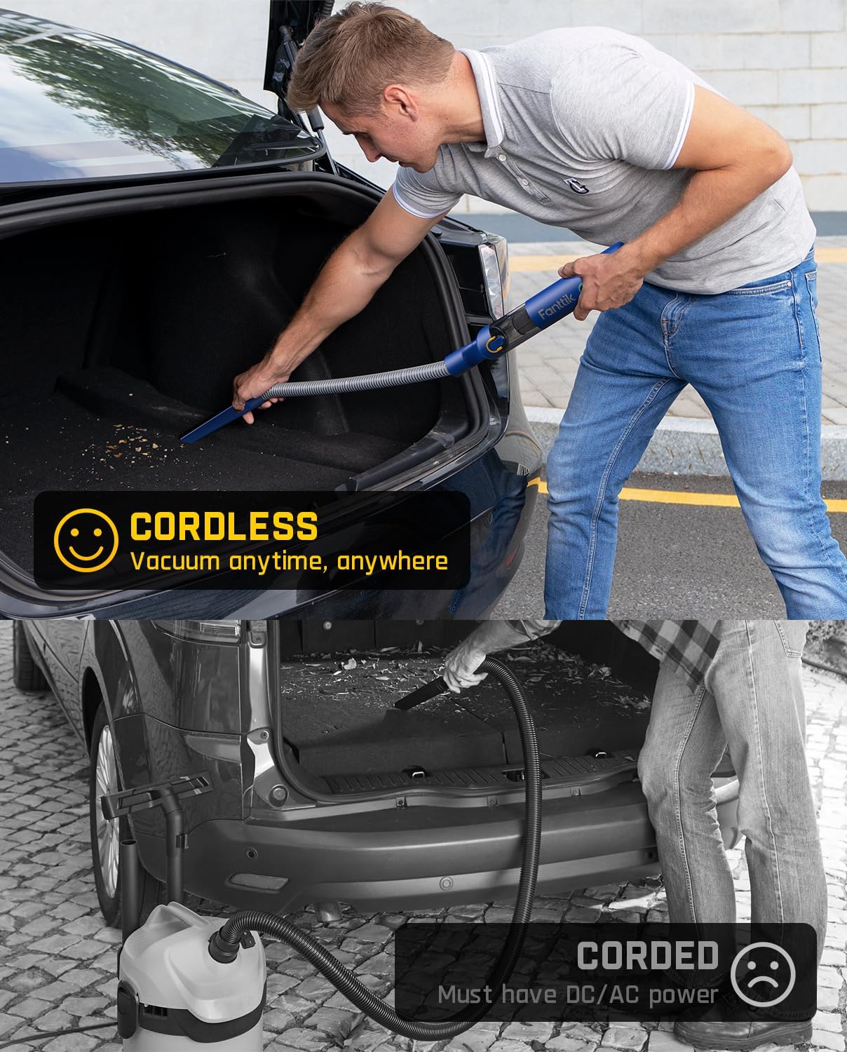 - Portable Mini Car Vacuum: Are you still worried about how to clean the corners of your car? Fanttik V8 Mate comes with multiple accessories to effortlessly clean every hard-to-reach corner