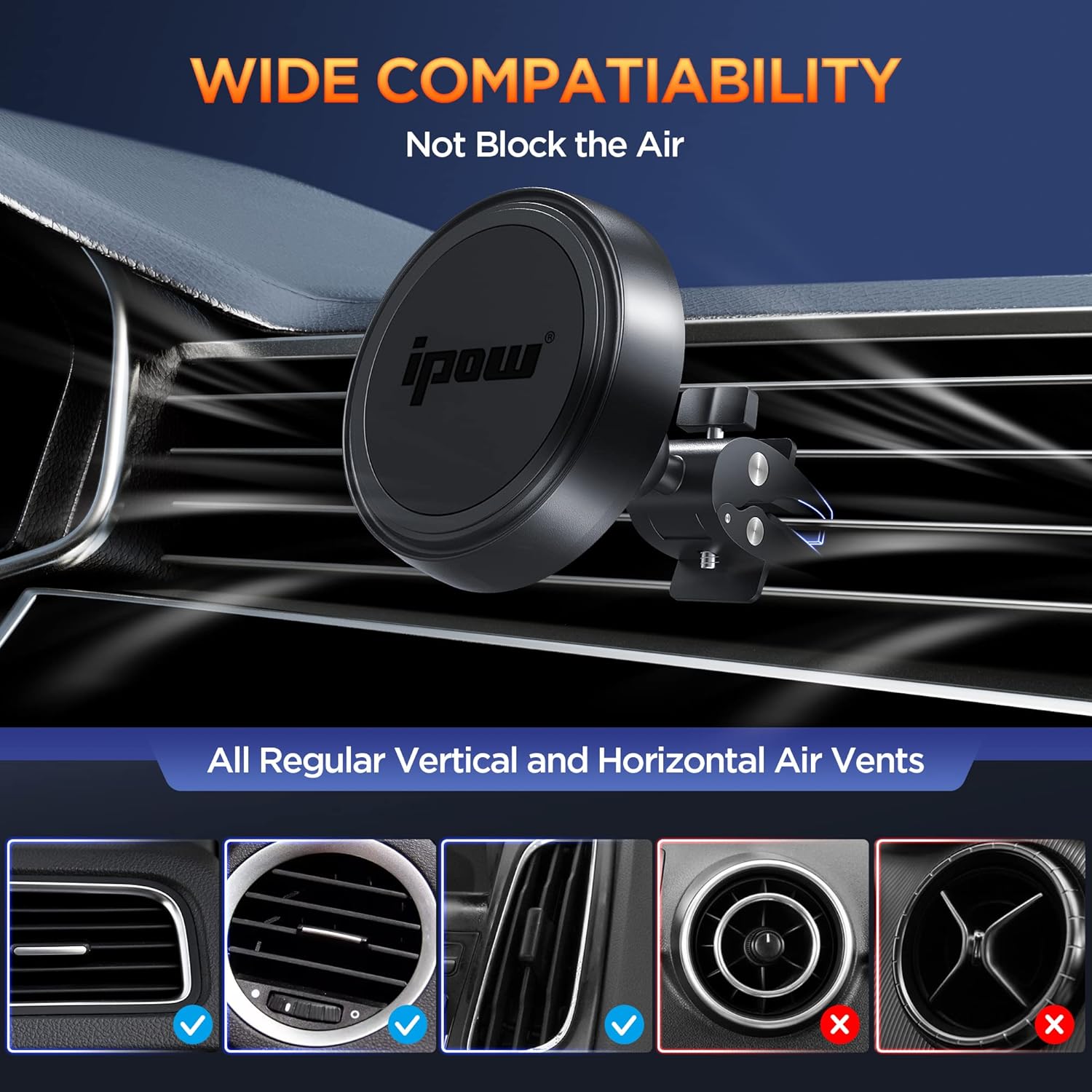 IPOW Magnetic Phone Holder for Car, [Upgrade Alligator Clip] Strongest Magnet Power Cell Phone Mount for Car Vent Compatible with iPhone 14 13 12 Pro Max MagSafe Case Samsung Galaxy Any Smartphones
