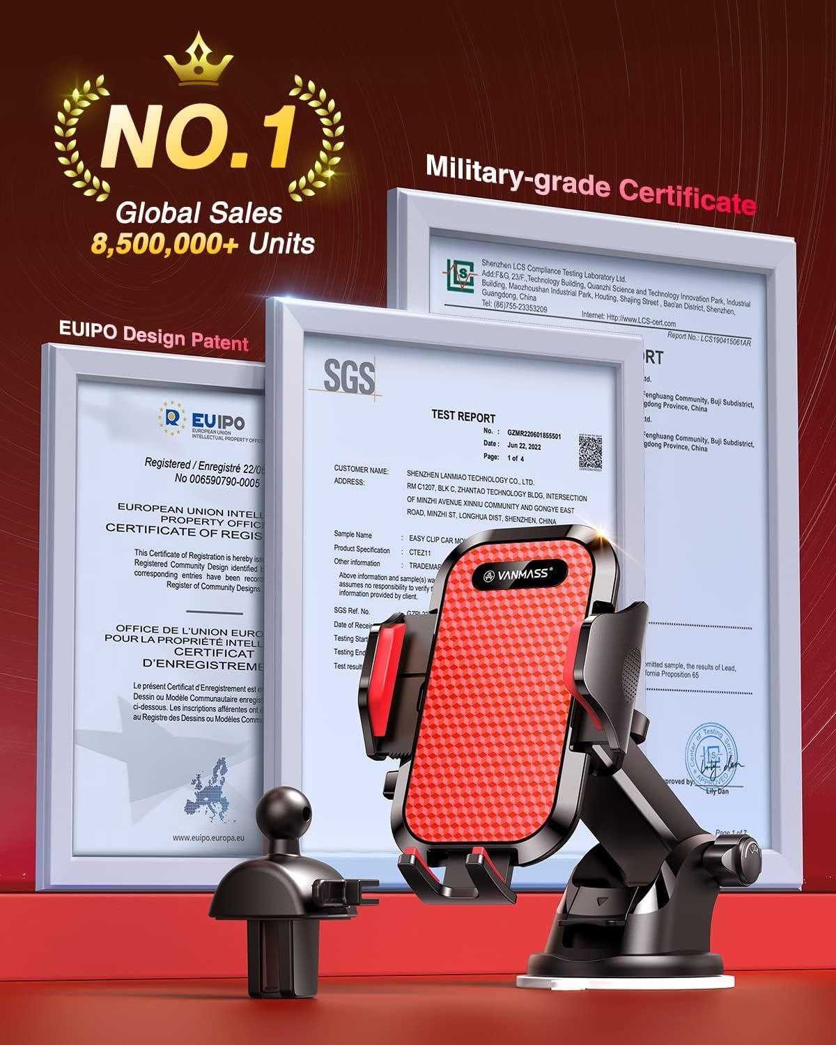 - ใLuxury Present: High-end Configuration & Exquisite PackageใWe use the latest environmentally friendly materials, have no odor, and are harmless to human health. Excellent quality + premium appearance + elegant packaging = the best gift for your loved ones, friends, and family. The VANMASS car phone holder is fully protected in an elegant and eco-friendly box. Comes with a 1x car phone mount, 1x suction cup, 1x air vent clip, and 1x user manual. We always stand behind every one of our products!