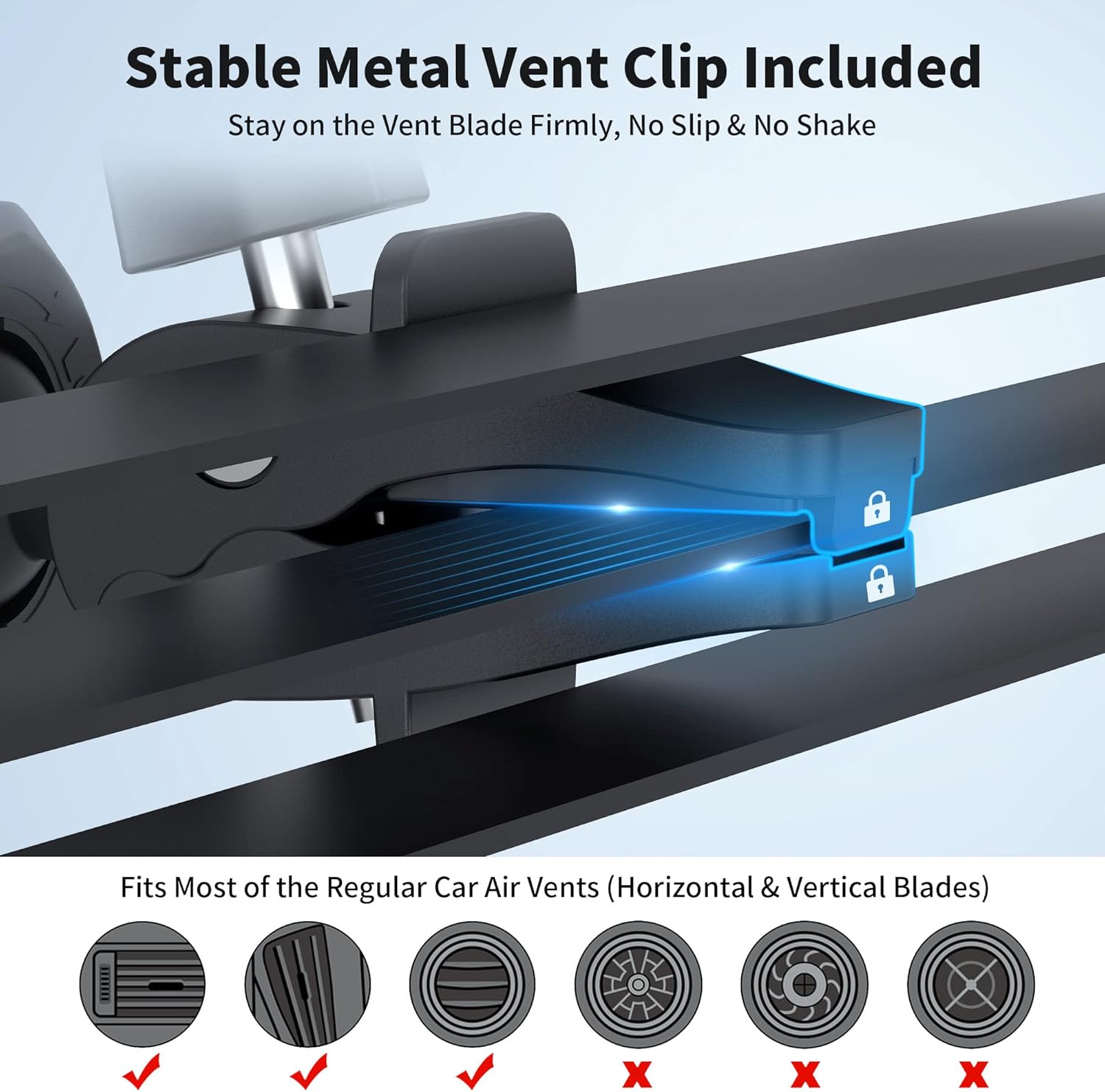 - 【Apply to Car CD Player Slot or Vent 】 Has both the CD player mount and the vent mount options, which means you can mount your phone on cd player slot or air vent. Both options are easy to set up and are very secure. The CD slot clamp fits snuggly into the CD player slot and has no vibration or shaking, the metal vent clip tightens great on the car vent too