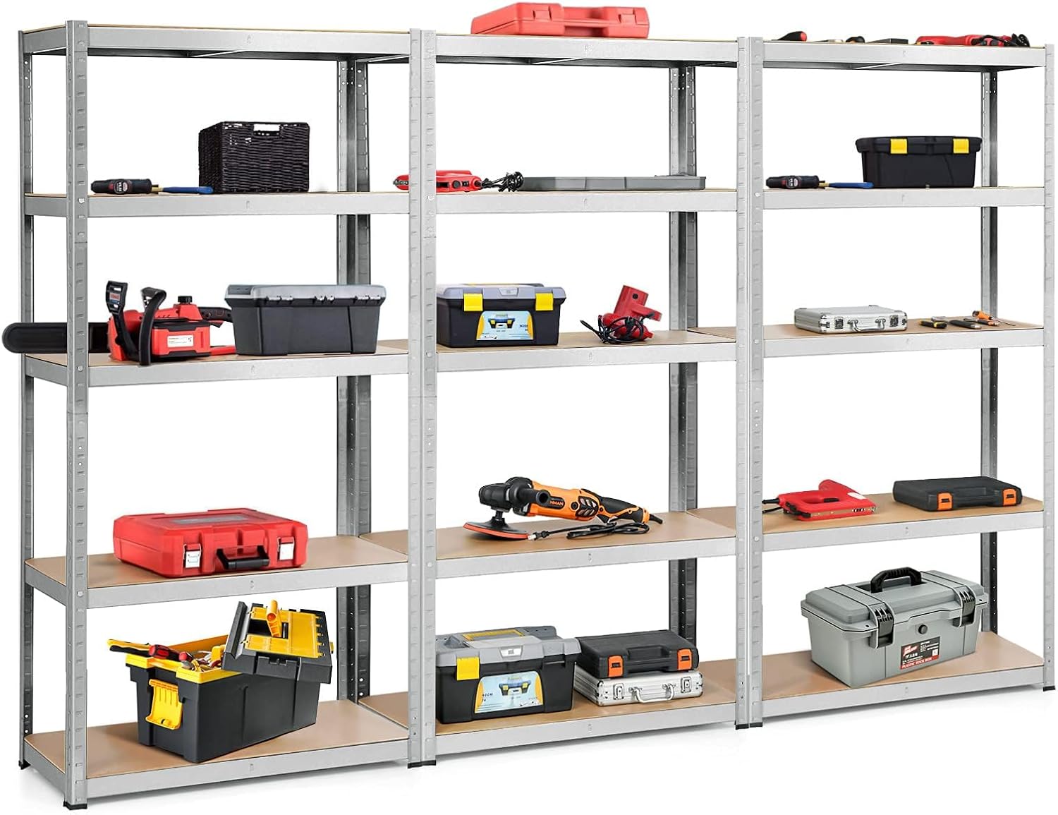 - HEAVY-DUTY 385 LB PER SHELF β Industrial-grade steel frame and reinforced MDF boards support up to 385 lbs per tier . Perfect for tools, bins, appliances, or workshop gear.
