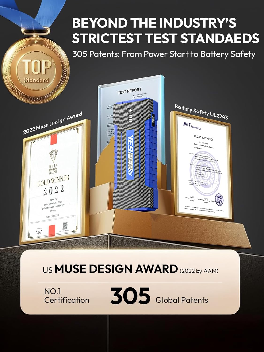 - Product Set - YESPER YJS20 Car Battery Jump Starter, Heavy-Duty Jumper Clamps, USB to Type C Cable, Cigarette Lighter Adapter, Carrying case, User Manual. And 18-month worry-free warranty & lifetime technical support. Feel free to contact us with any questions.