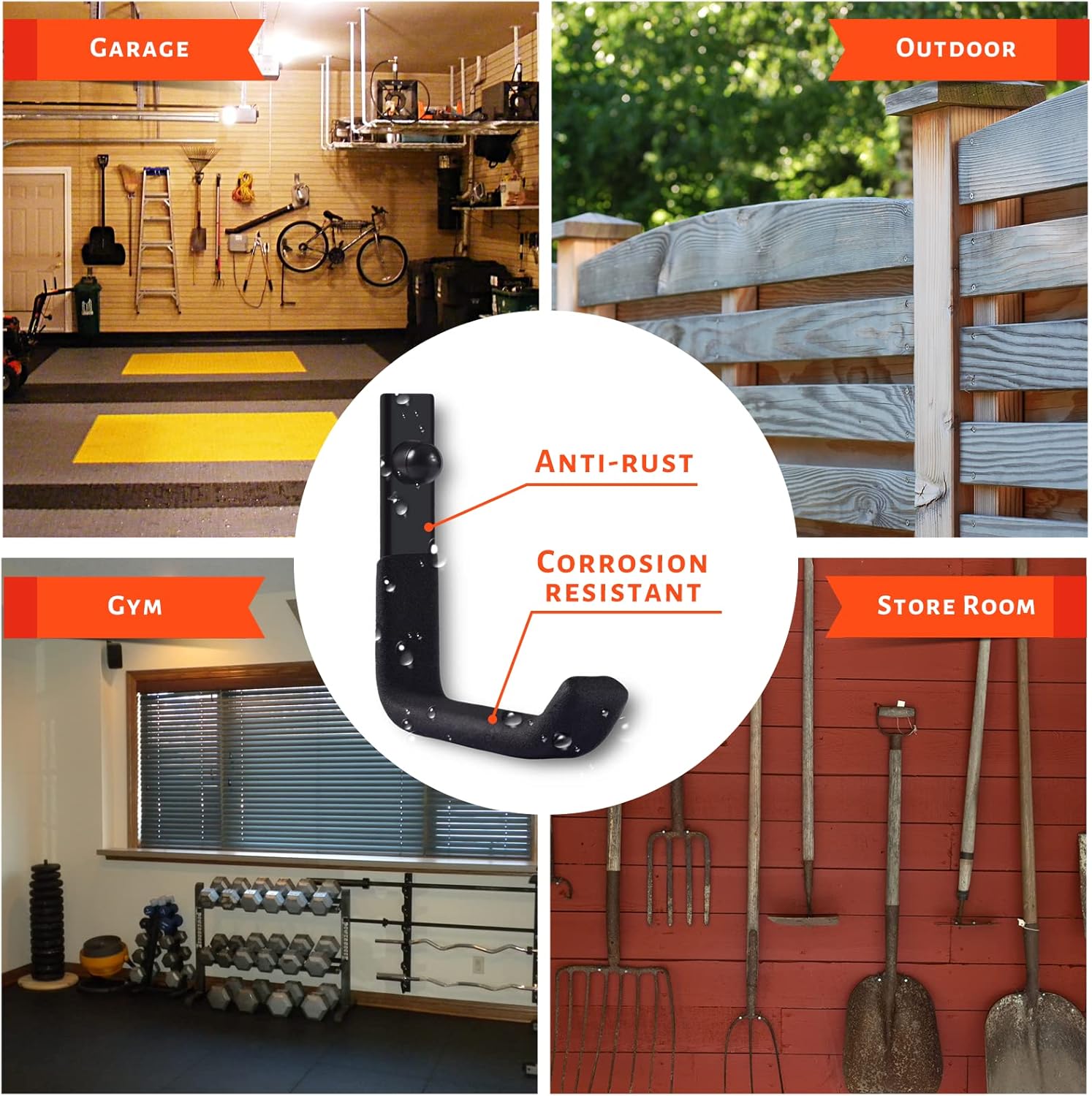 - ▶【MULTI-PURPOSE】Storage single hook provides more flexibility and can be used in combination. This garage wall hooks can hang everything from sports fitness equipment to yard lawn tools, such as snow shovels, folding chairs, tire, strollers, extension cords and other bulky Items.