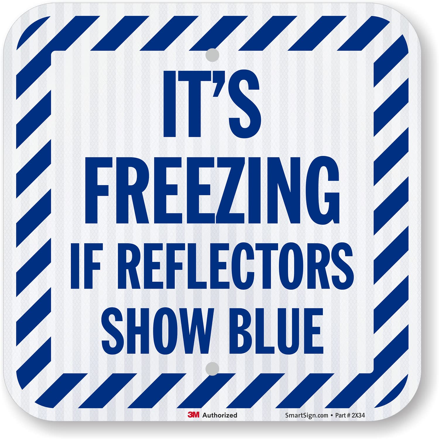 - DURABLE ALUMINUM: 'It's Freezing If Reflectors Show Blue' signs are made of 63 mil thick heavy-duty rustproof reflective aluminum that easily lasts 10+ years outside and meets DOT road and traffic requirements.