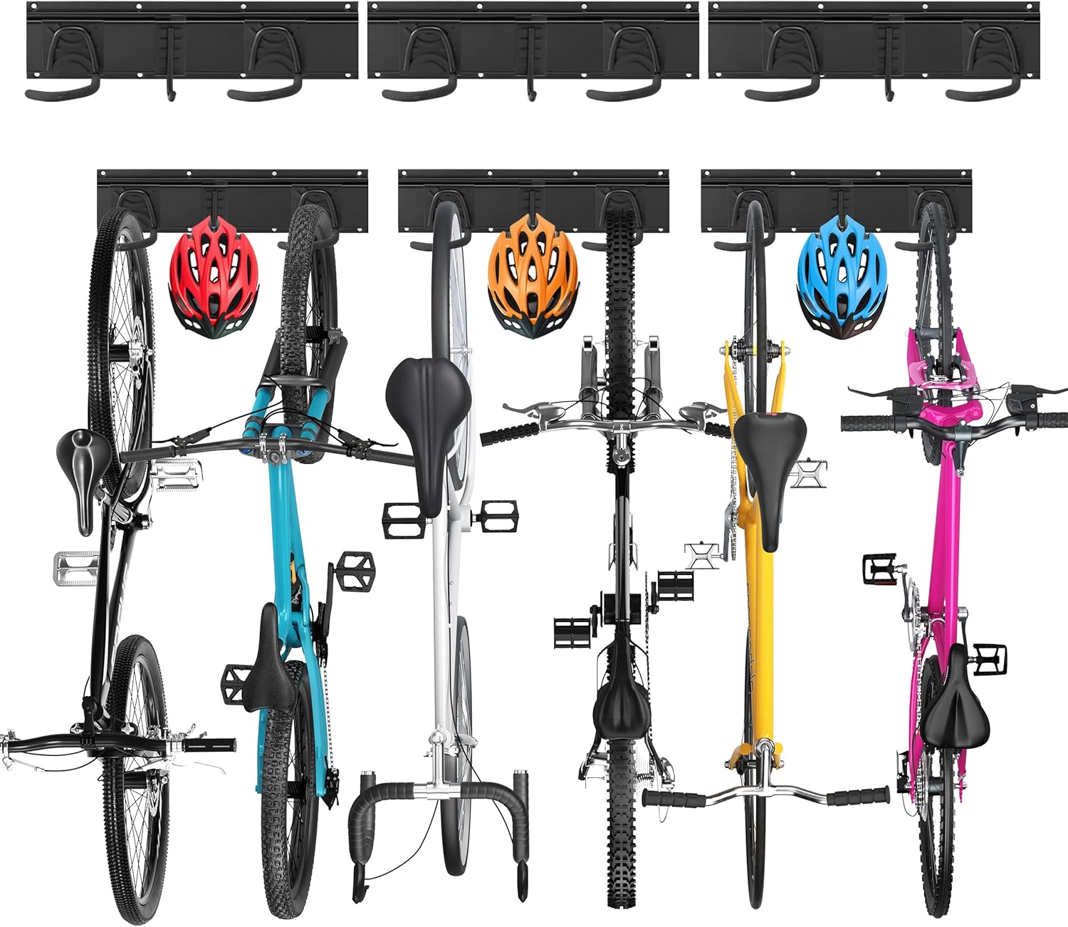 Sinoer Bike Storage Rack 6 Bike Wall Storage Rack and 3 Helmets, Heavy Duty Powder Coated Steel, Bike Rack Holds up to 66lbsfor Mountain Bikes, Multiple Bicycles,Road Bikes