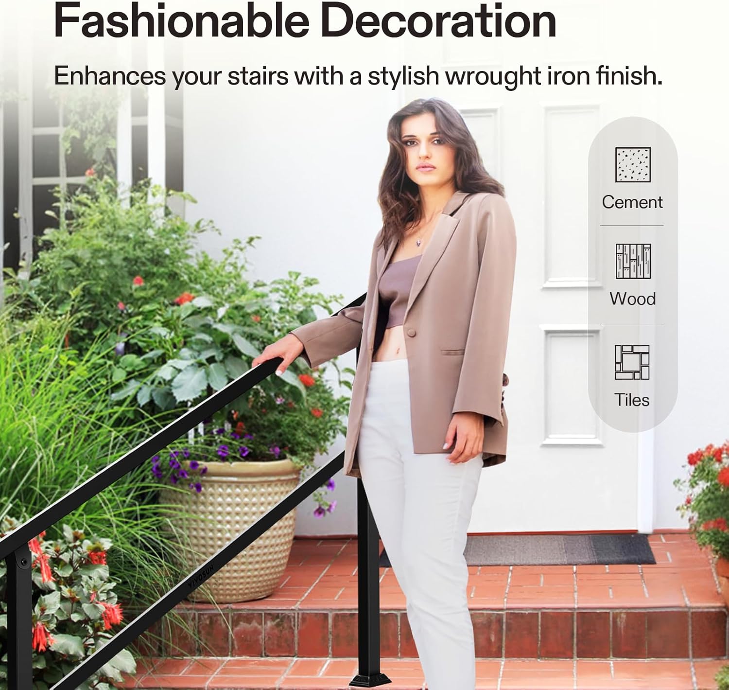 - Safe & Fashionable: This railing’s powder coated surface is easy to maintain and clean; It helps people keep balance in rainy days or in winter, and prevents slipping on wet or icy days, and also decorates your stairs with a fashionable wrought iron look