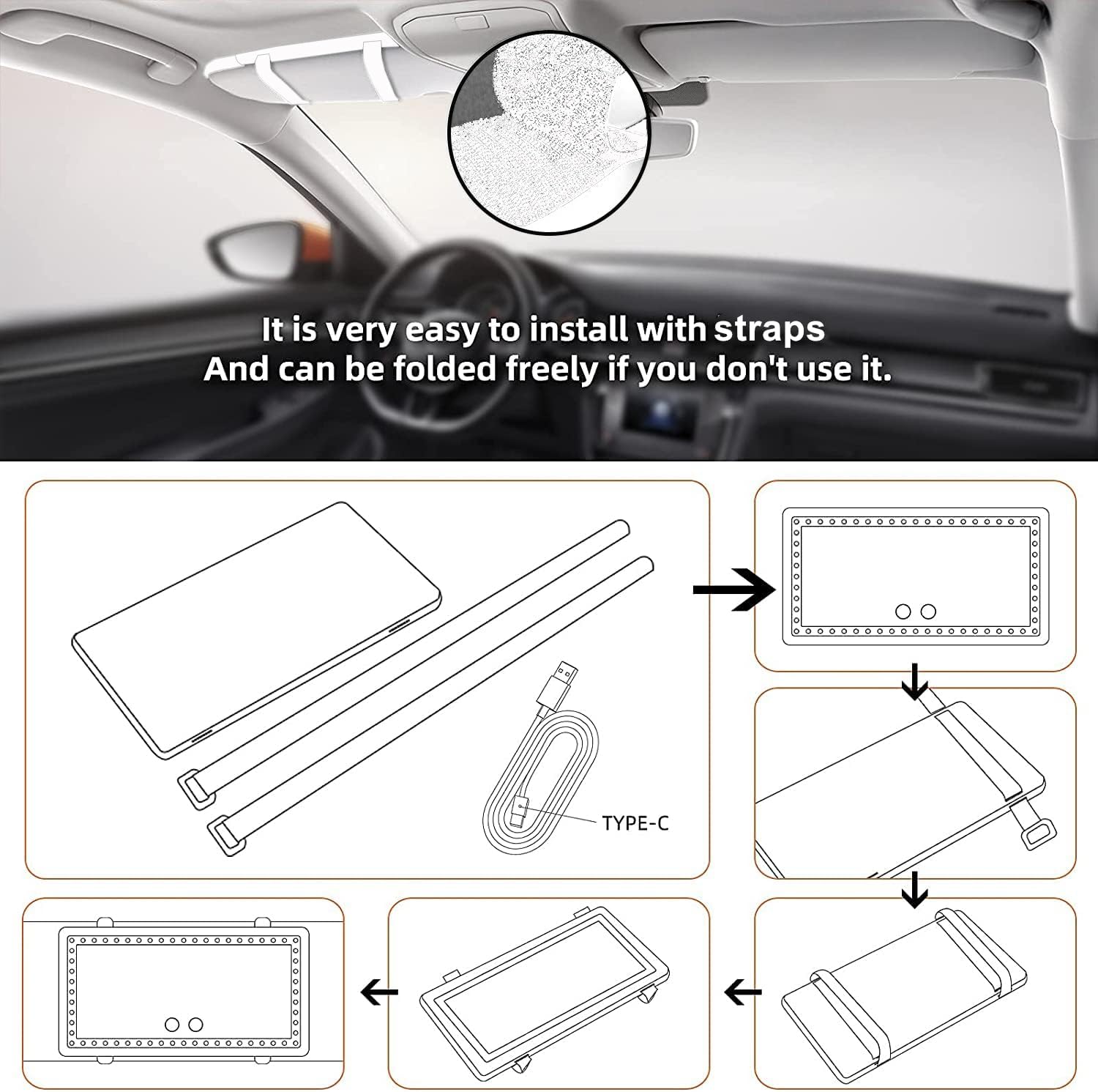 - UNIVERSAL SIZE DESIGN - The size of makeup mirror is 8(L)*5(W)*0.35(H) inches, which suits for most of the sun visor of cars. Compact and lightweight design, easy to install and use, does not take up extra space inside the cars.