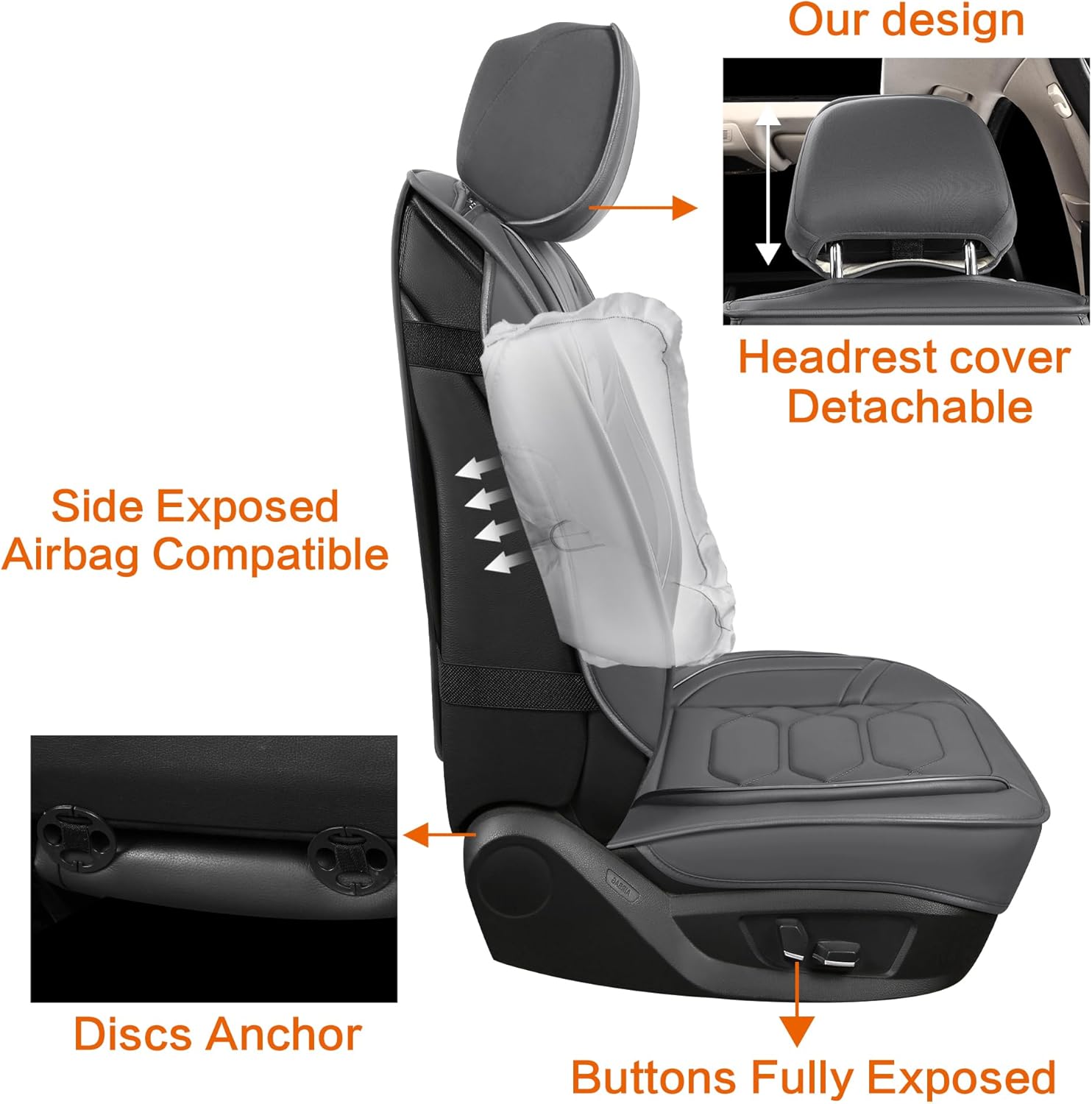 - Premium Material: Made of high-grade leatherette materials, Waterproof, Durable Wear-resistant and Easy to Clean. Protecting your car seats from damage, spill or stain in all directions. Equipped with thick, premium High-Density Foam to create top resilience for maximum comfort during your drive.
