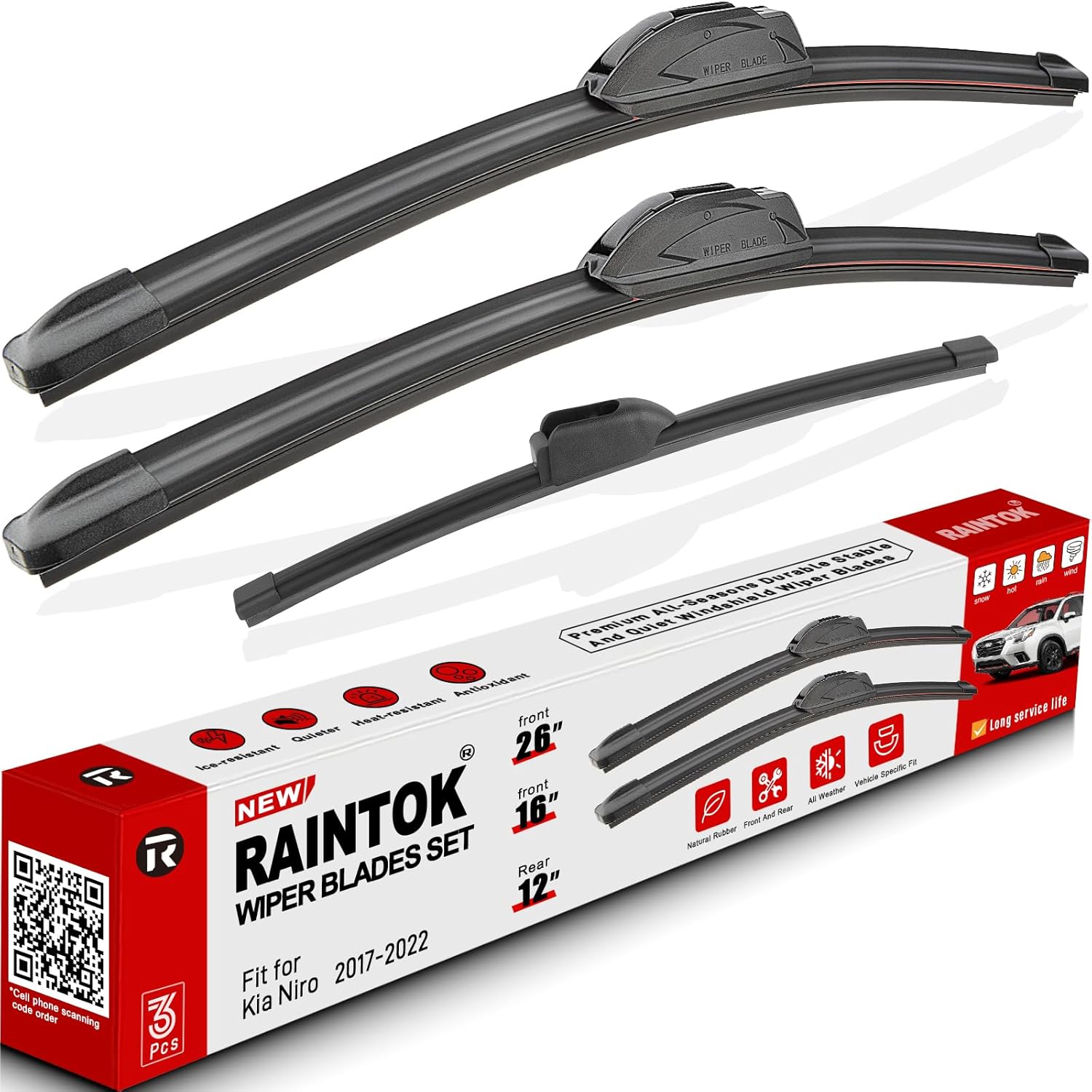 - {FITMENT}: Replacement for 2017 2018 2019 2020 2021 2022 Kia Niro 26inch + 16inch front with 12inch rear windshield wiper blades.