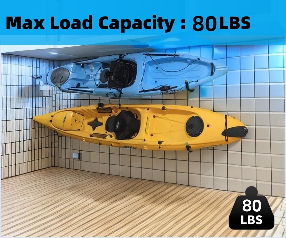- 【 PERFECT STORAGE FOR LARGE ITEMS 】 This kayak wall mount can save more space for your garage, garden and warehouse. High-quality storage hooks can hold a variety of large tools, suitable for storage of large items such as shovels, canoes, kayaks, snowboards, ladders, tools and wood.