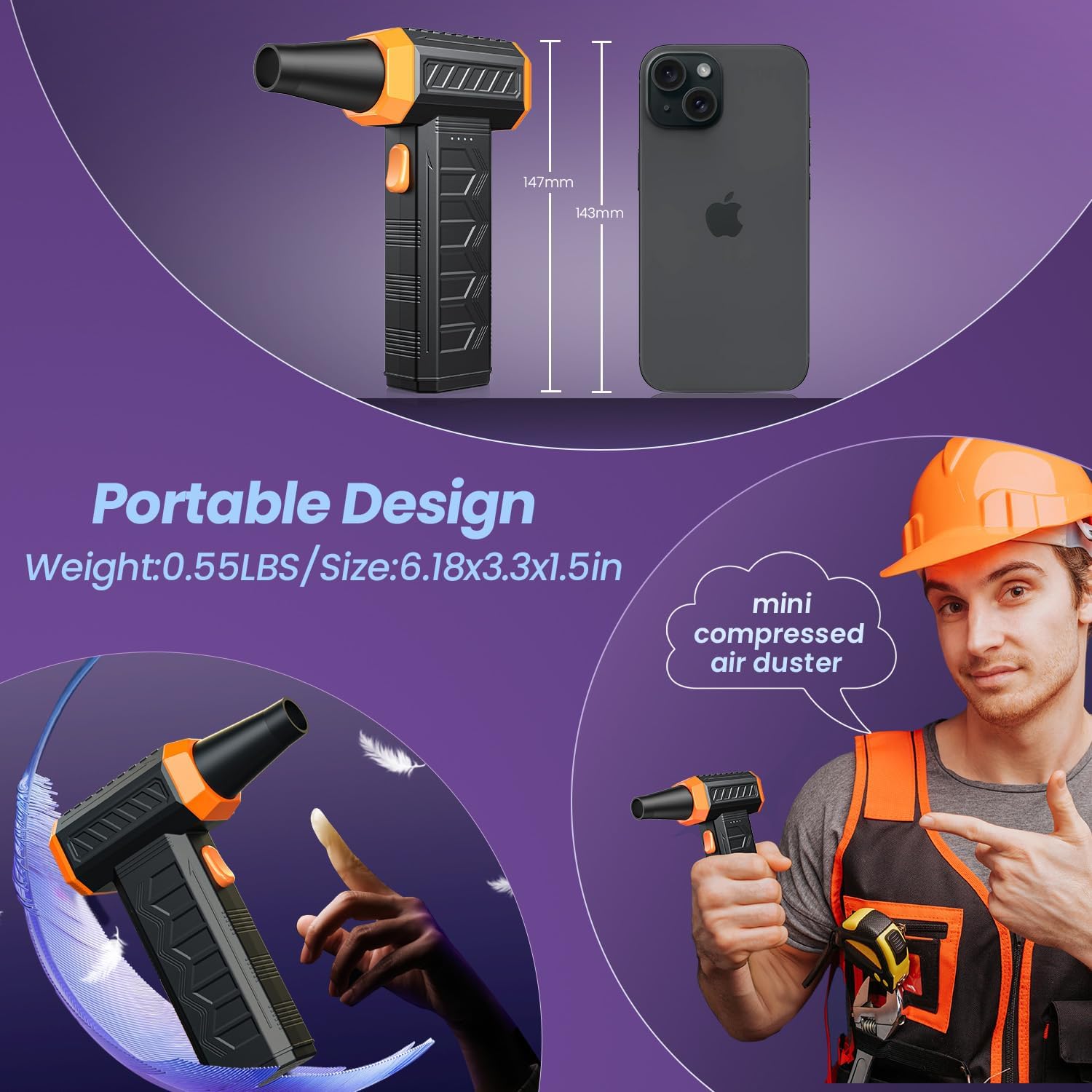 - 【Energy Efficient and Eco-Friendly】Compressed air duster Jet Fan can be used repeatedly by charging, which is more energy-saving and environmentally friendly than canned air compression. With a dust blower, you will be able to use it forever.