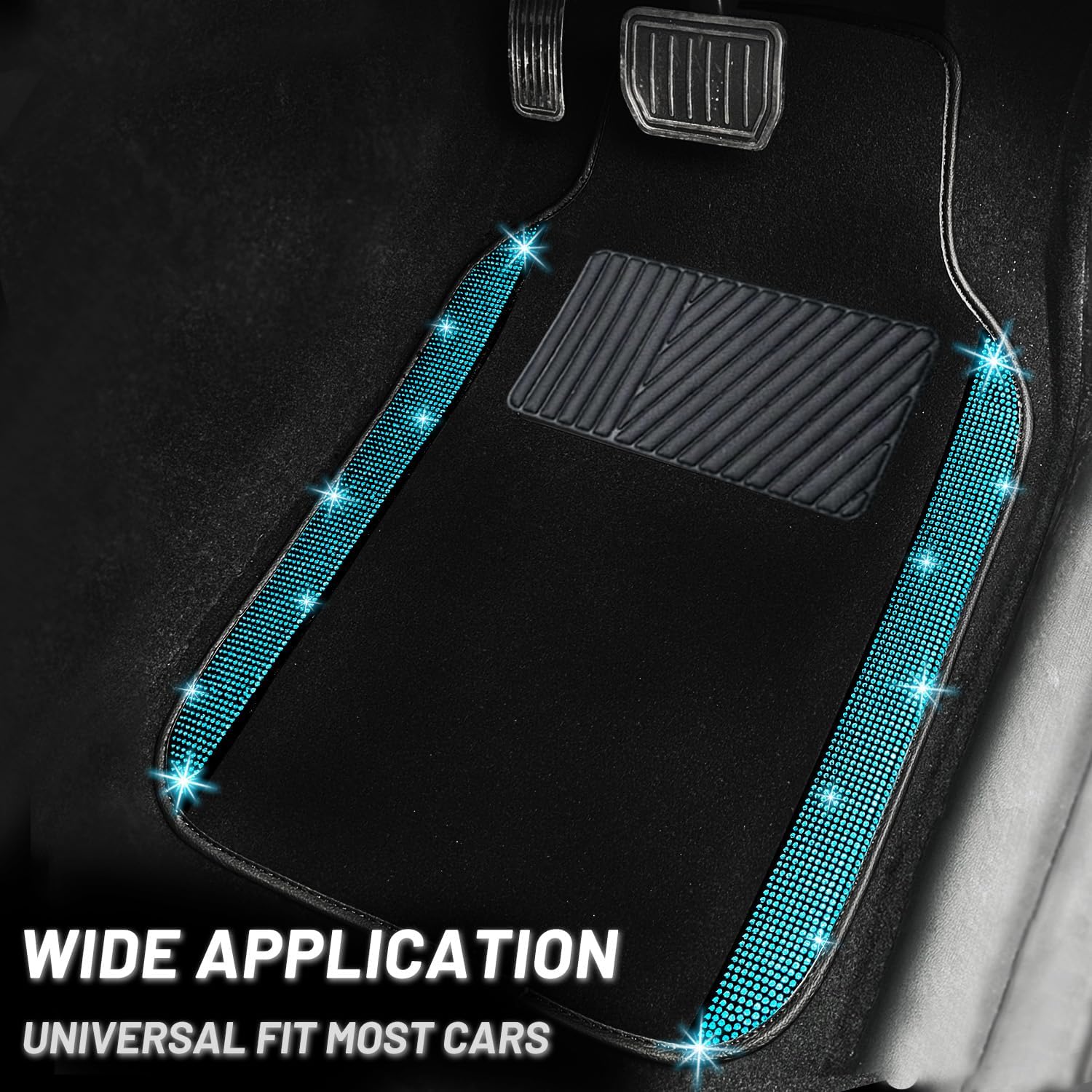 NBTEPEM Aquamrine Bling Car Floor Mats Full Set, Universal Fit Most Cars,SUV, Trucks, 4 pcs Sparkle Glitter Diamond Carpet for Women Girls with Anti-Slip Pad (Aquamrine Diamond)