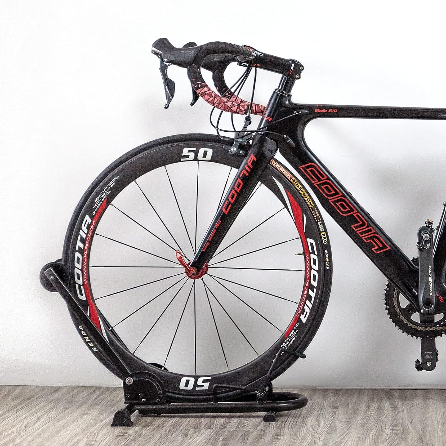 - 【EASY TO USE】: The bike floor stand is an impressively user-friendly freestanding floor rack that is also incredibly lightweight and portable to boot. It comes fully assembled and weighs just 6.17 lbs. There is no lifting required to load and unload the bike–simply roll it onto the wheel tray and against the spring-loaded support arm. The bike storage only makes contact with the front or rear tire, so there is no rim or frame contact.