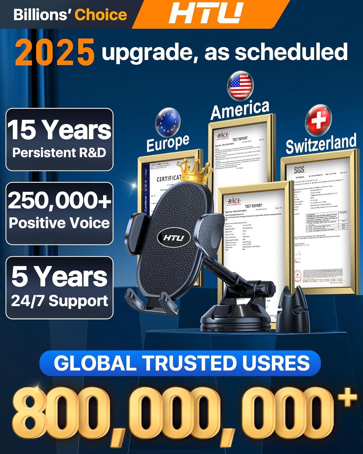HTU 【Military-Grade Suction】 2025 Cell Phone Holder for Car【Flexible Telescopic Arm】 Car Phone Mount Stand for Dashboard Windshield for iPhone 16 Pro Max 15 14 13 12 Samsung Truck Jeep, Black