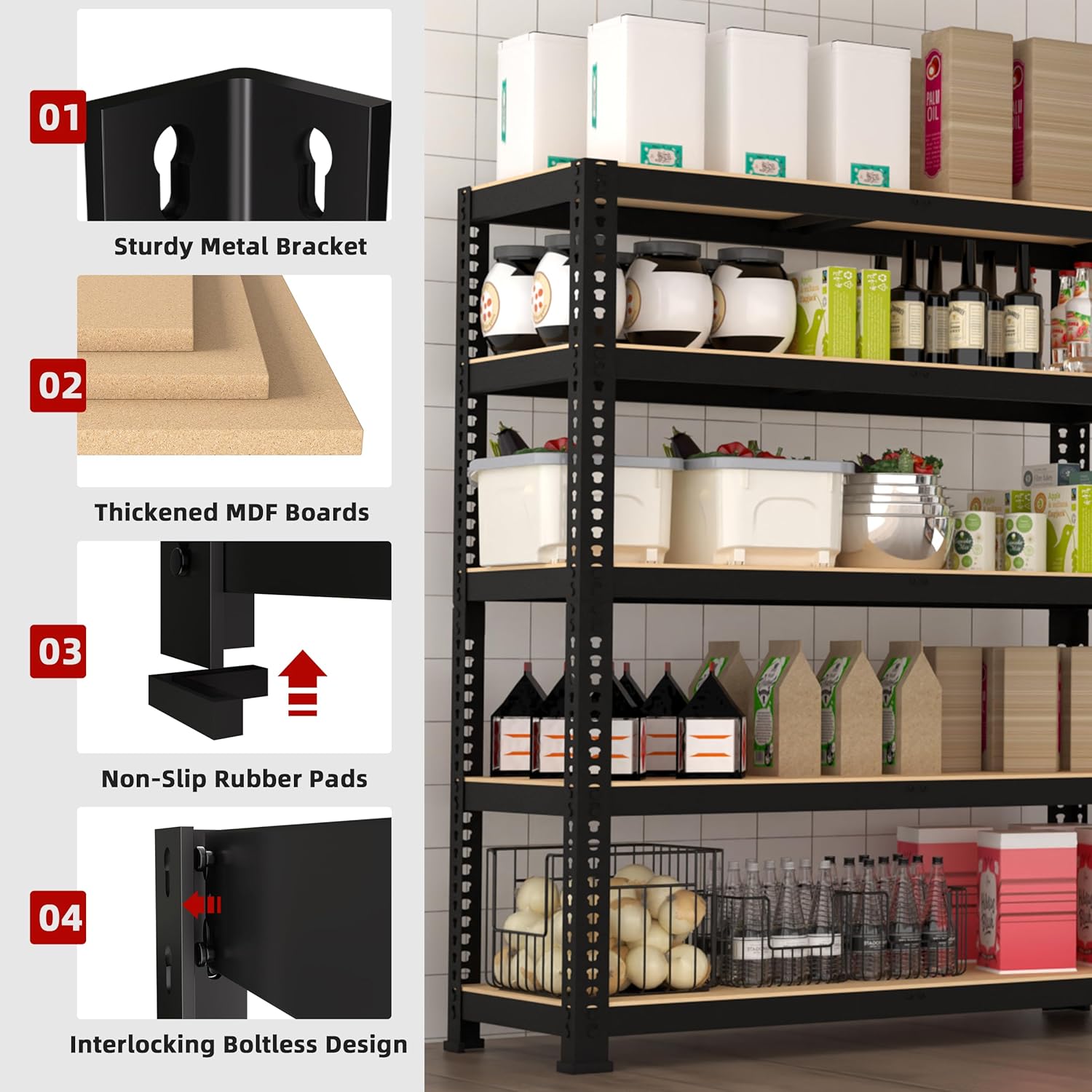 4 Packs 35.5" W x 16" D x 71" H Adjustable Garage Storage Shelves - 5-Shelf Heavy Duty Shelving Unit, Metal Utility Storage Organizer Racks for Warehouse Pantry Closet Kitchen, Black