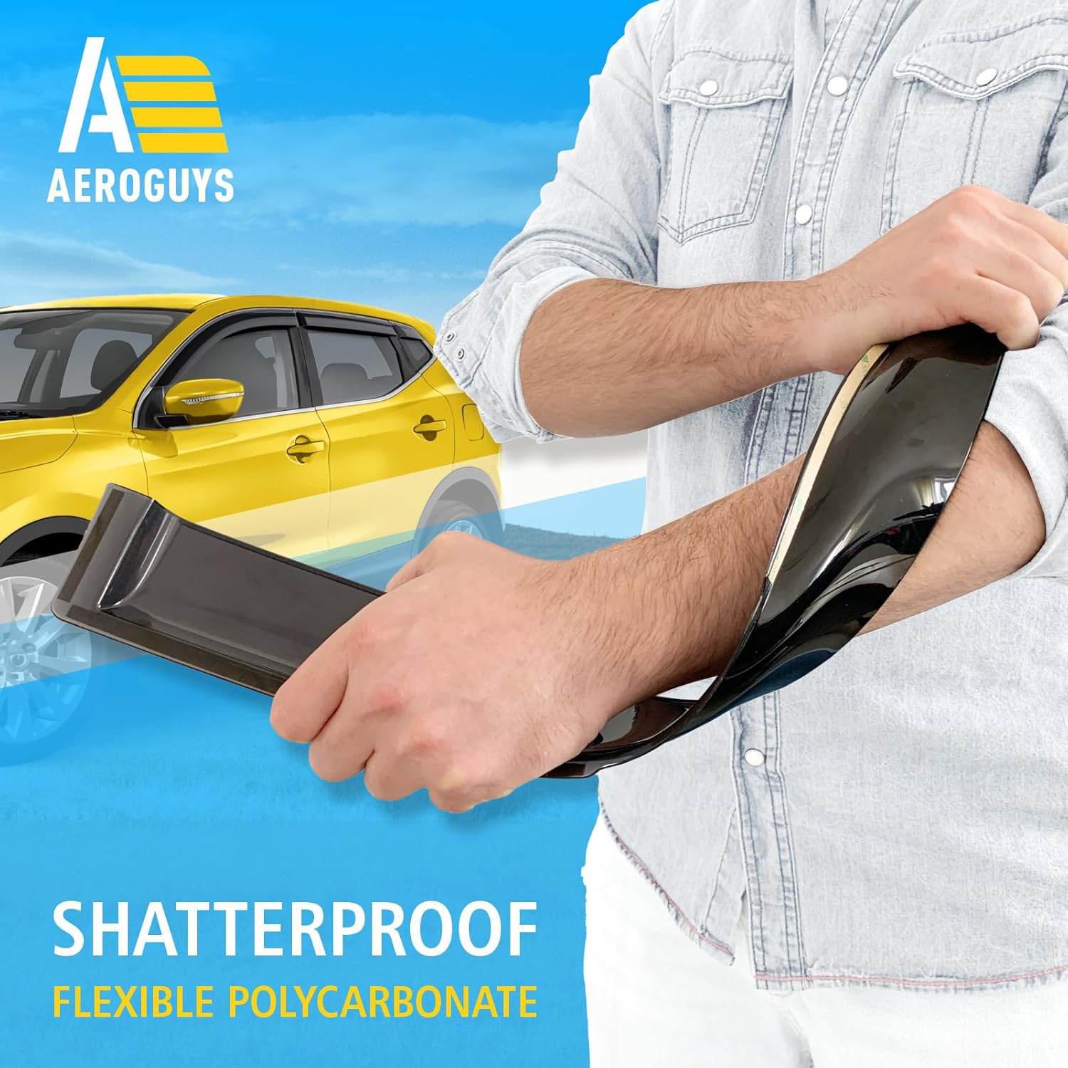 - Incredibly Durable AEROGUYS Auto Window Deflectors β They are made with strong and tough polycarbonate which is clear and scratch-resistant. They also provide UV protection making your ride more comfortable under all weather conditions.